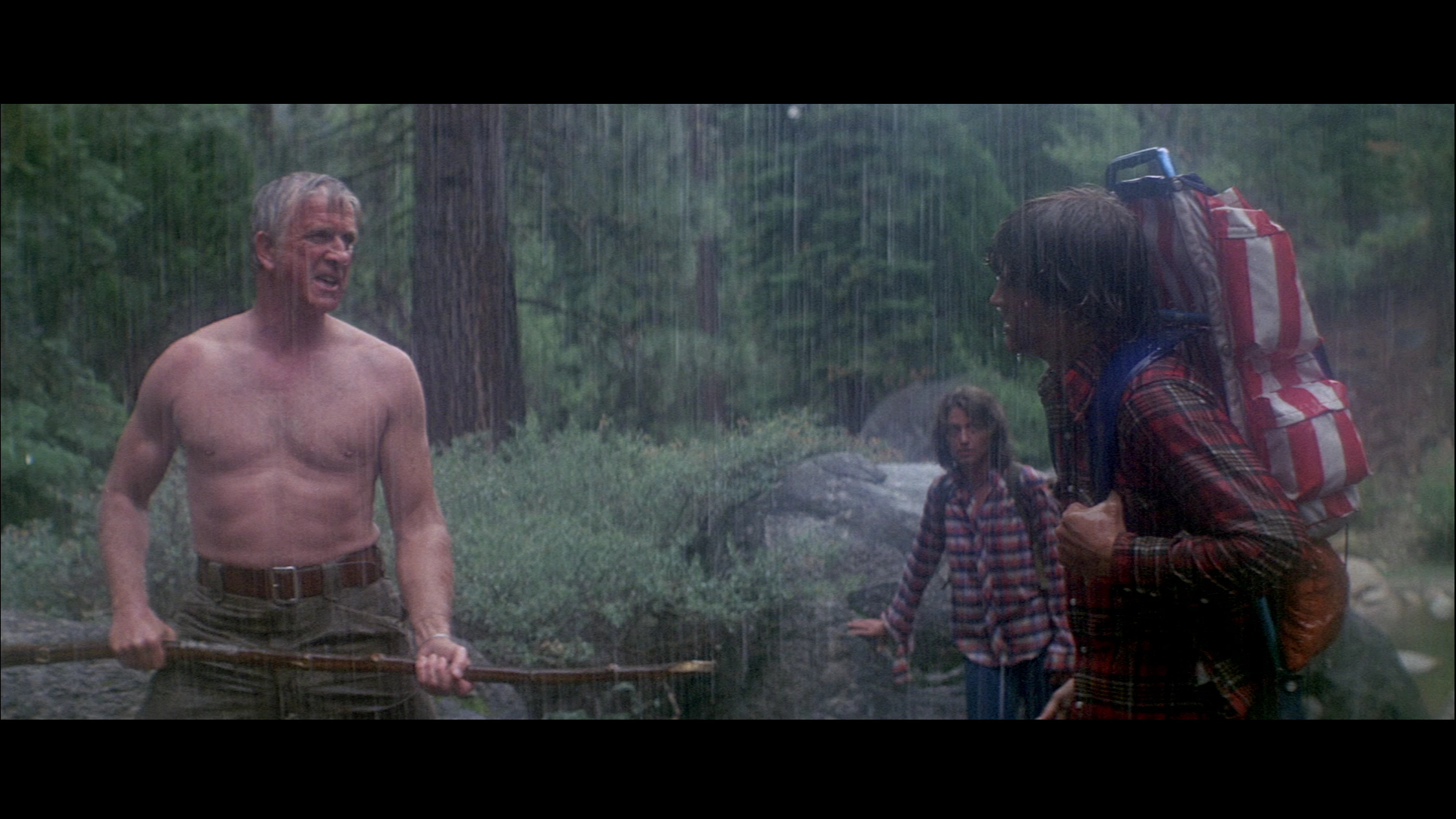 Now jump forward seven years later, with the Media Blasters disc out of circulation and the film moving over to Scorpion Releasing for a 2013 reissue on both Blu-ray and DVD. Though it seemed impossible a few years ago, what we have here is a drastically improved transfer from an interpositive, meaning this is the first complete scope version in good condition ever released on home video. The film itself was shot with some gauzy filters during some daylight scenes (which is why Christopher George and Andrew Stevens' shirts make them look like they're in a shampoo commercial), but the transfer looks much sharper and cleaner than ever before. To put it mildly, you can consider the past versions obsolete from an a/v standpoint. On the audio end you get a spacious 5.1 DTS-HD mix with the score and effects carried over to the rear channels, plus the regular mono (2.0) version included for the original theatrical mix (which purists will probably prefer). In a particularly welcome gesture for film music fans, Schifrin's score (which has never been released before in any format) is also included as an isolated track, which will make this worth grabbing for his fans alone. Regular Scorpion hostess Katarina Leigh Waters offers the usual intentionally ridiculous wraparounds (in standard optional opener and closer format on the DVD and a single "trivia segment" on the Blu-ray), starting off with a happy walk through the woods that turns nasty thanks to a stuffed eagle. She runs through the usual interesting aspects of the major players from the film, with lots of animal and nature gags along the way. Then you get video interviews with Cedar (17 mins.) and Mantee (9 mins.), which are longer standalone versions of the ones edited into the featurette on the Media Blasters disc. Both of them run substantially longer and include more info about their careers outside the film, playing very differently as well without the interjections from Backlinie. The usual short trailer is also included along with a bonus one for Grizzly. Perfect viewing for the next Earth Day, or any other day for that matter.