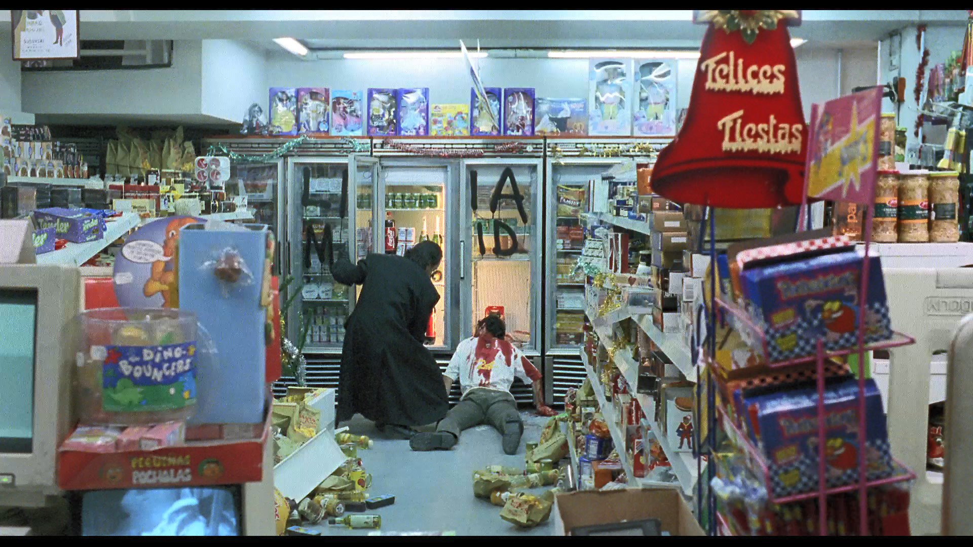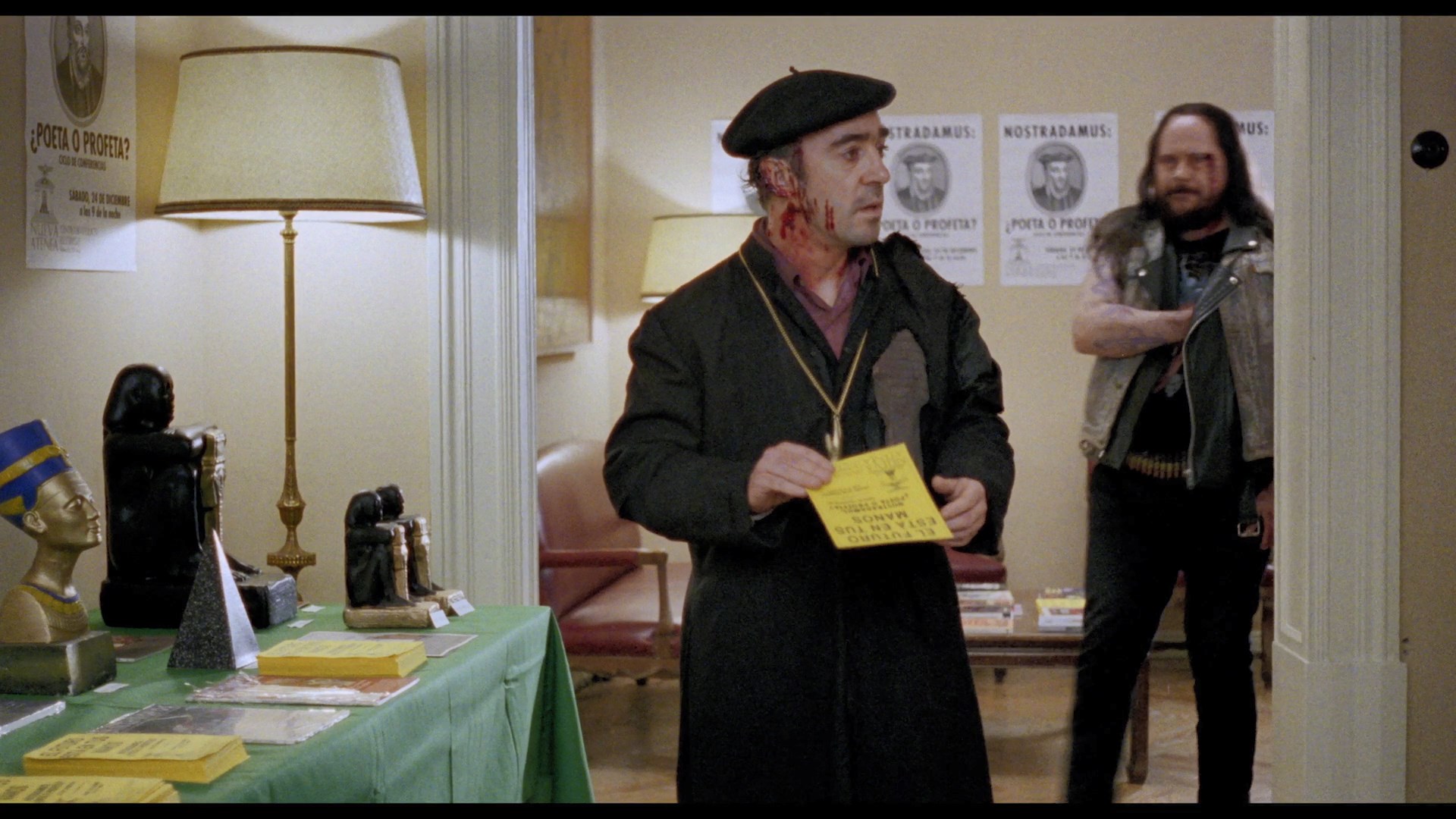 promotional gallery (1m20s), an archival making-of featurette (20m44s), and de la Iglesia's 1990 short film Mirindas Asesinas (12m28s). Also starring Angulo, it's the director's first credited work and a very funny, violent sketch about an evening at a bar that goes very, very wrong after a soda order, complete with a soundtrack that will sound very familiar to H.G. Lewis fans.