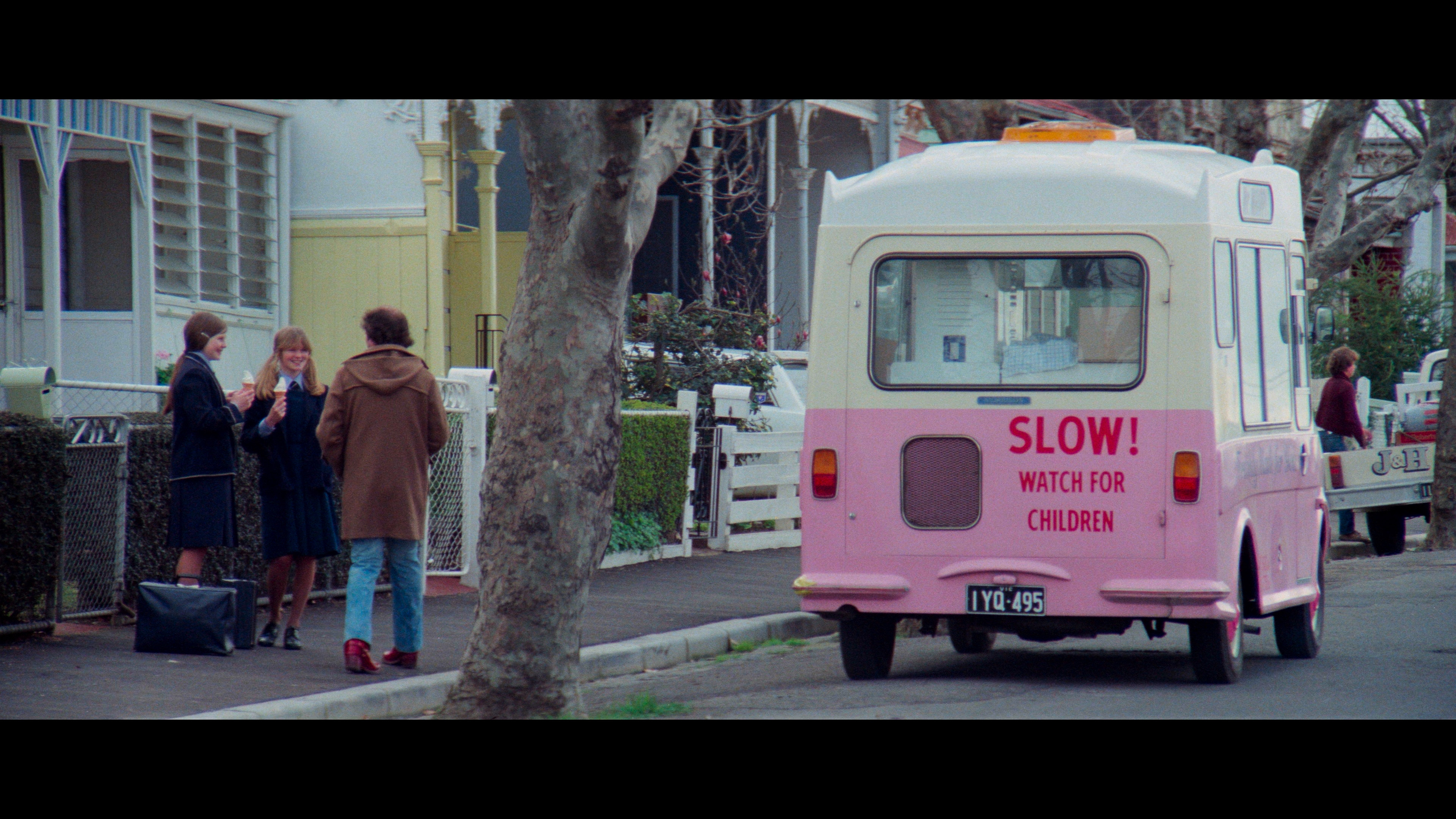with soap opera overtones, this Australian exploitation outing marked the directorial debut of Simon Wincer, a talented filmmaker who went on to helm Dark Forces and The Lighthorsemen in his native country and solid Hollywood fare like Lonesome Dove, Quigley Down Under, and D.A.R.Y.L. Gifted with an innate sense for scope composition and fleet-footed storytelling, he isn't the sort of guy you'd expect to get his start with a psycho-shocker about a fashion model stalked by a malevolent ice cream truck.
