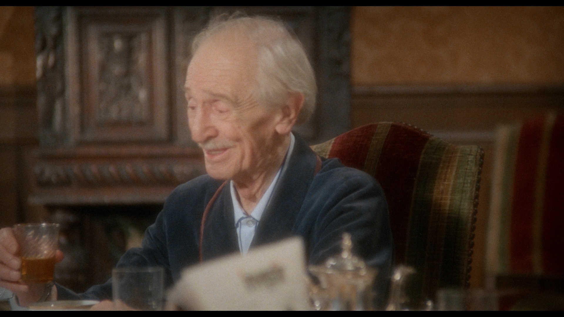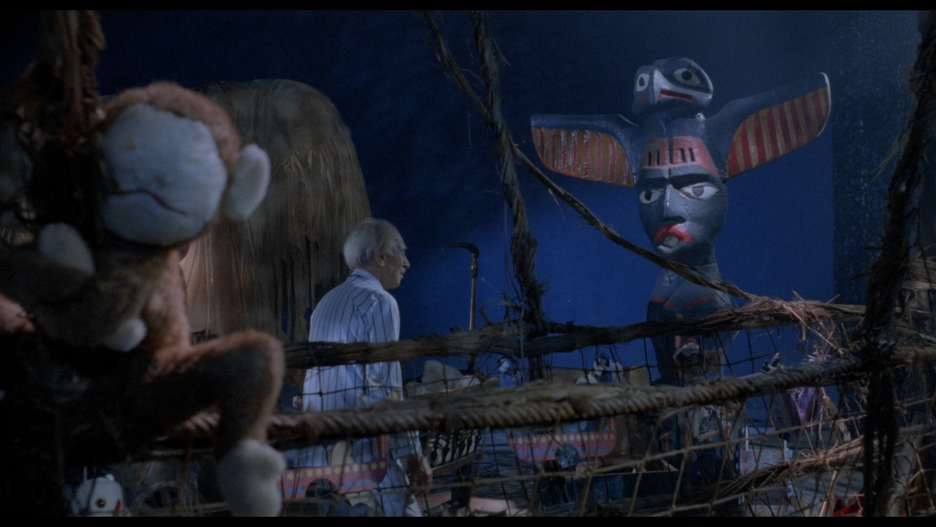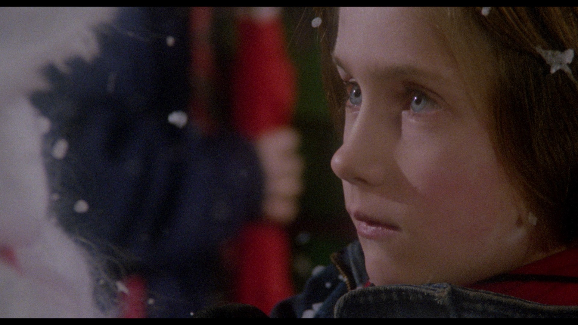 In 2020, Vinegar Syndrome brought the film to UHD and Blu-ray as a combo pack just in time for the holidays. The 4K-sourced transfer appears to be from the same scan, though on the Blu-ray it's been given a bit more color correction and has punchier, more vibrant reds and browns in particular. The UHD benefits significantly from the addition of HDR here and looks gorgeous in motion with a much wider spectrum of color on display that makes the heavy reliance on blue lighting from over half the film easier to appreciate; blacks are also deeper and richer throughout, and the white snow really pops whenever it flurries across the screen. The DTS-HD MA French 2.0 track sounds excellent and decodes beautifully to surround with lots of multi-channel activity throughout. The specs list "newly translated English SDH subtitles," though thankfully that's not correct as these are standard English subs without SDH designations (light yellow on the Blu-ray, white on the UHD). The UHD is bare bones and devotes all of its space to the film itself, a wise choice given how much breathing room it gets; the Blu-ray features a slate of extras essentially mirroring what's on the Camera Obscura release, albeit running at proper speed now so the running times vary a bit. (For example, "Jouets Interdits," or "Forbidden Games" as it's translated here, now runs 88m46s.) The production featurette is now called "Simon Says Roll Sound," FYI, in case you're trying to compare.