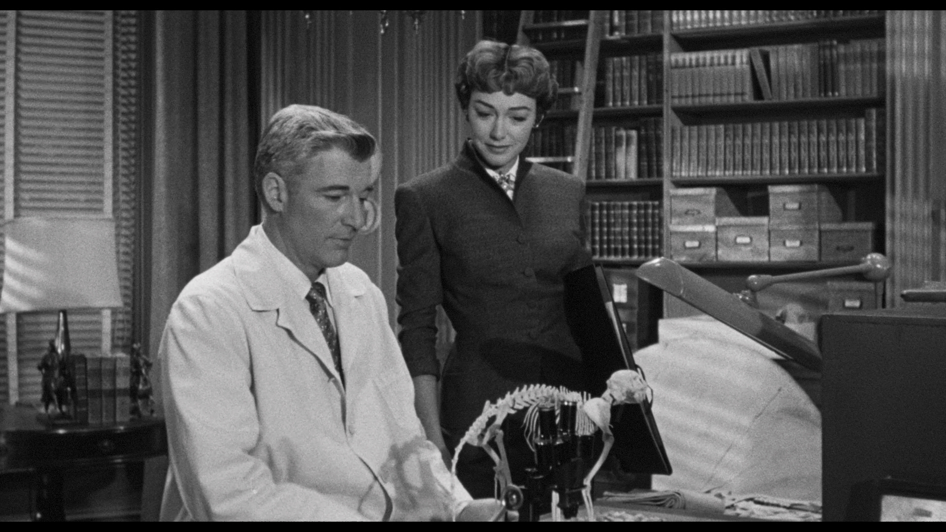 Factory restores the intended 1.85:1 framing and looks much, much better than ever before thanks to what's cited as a "new 2K scan of the original film elements." The stock footage is still in rough shape, of course, but the original material is sharp and features nice, rich black levels as well as a nice, natural level of film grain. The DTS-HD MA English mono track is also in pretty solid shape, with optional English subtitles offered. In addition, the film can be played with a new audio commentary by Tom Weaver, one of our preeminent monster kids, with guest appearances by "monster movie musicologist" David Schecter and (briefly) Larry Blamire. It takes a while for things to get going as Weaver deliberately leaves a lot of long silent gaps for the first 8 minutes or so, but after that it's full of info about earlier casting possibilities, the various shooting locations, the various recognizable faces scattered throughout, the audience results from a test screening, and much more. Also included is the Mystery Science Theater 3000 episode devoted to the film (92m16s) with the gang riffing on the film in all the ways you'd expect, as well as the theatrical trailer and a gallery (7m56s) of stills, lobby cards, and other promotional material, including some fascinating alternate preliminary art designs for the poster.