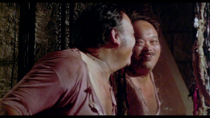 The Vinegar Syndrome packaging notes that both this film and its co-feature were taken from 35mm interpositives, and overall this one looks pretty solid despite some obvious ravages over the years (especially the opening and closing credits, which may just be due to cheap, cruddy opticals, as well as some water damage and scratches that may have actually been printed into the original elements given the way they come and go from one shot to the next). It's a tremendous leap up in quality over the very few past video editions, to put it mildly, and finally having the film complete in its much more brutal original form is worth the price tag all by itself. If you've seen this before, be prepared for some pretty severe curve balls that