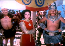 Now going back a few centuries, witness the daring exploits of Hun barbarian good-guy Tarkan (Tibet), who roams the land with his dog companion, Kurt. When a Viking raid leaves many of his compatriots dead or kidnapped, Tarkan embarks on a quest for justice against the Vikings, who plan to sacrifice the Hun king's daughter to a giant rubber octopus that lives in the ocean beside their castle. Throw in some slinky Chinese spies and plenty of action derring-do, and you've got one truly crazed period piece not soon forgotten. Based on a comic book, this is apparently the fourth in a continuing series of Tarkan adventures; hopefully we won't be deprived of the mighty Hun's further exploits somewhere down the road.