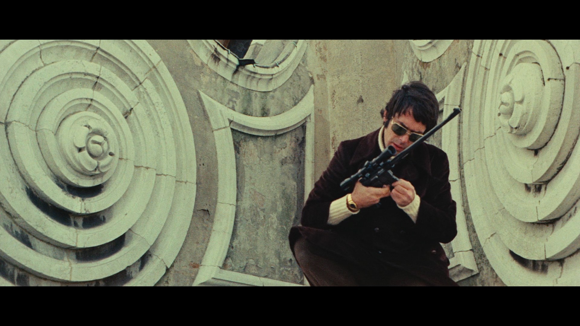 After years as a cinematic footnote, The Designated Victim made its DVD bow in 2007 from German label New Video who presented it with Italian, English, and German audio options plus an alternate Italian track with... uh, less music, apparently, plus optional German subtitles. The widescreen transfer didn't look bad at the time, though it can get very dark and muddy with the scope compositions visibly squished.
