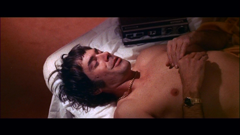 The film can also be played in an extended version, reinstating those SD deleted bits back into the film for the first time in decades if you'd like to see how they play out in context. It's fascinating to watch it all stitched together, variations in quality aside, though first-time viewers should definitely stick with the usual theatrical cut before proceeding. A substantial new audio commentary by the Fragments of Fear podcast, a.k.a. Rachael Nisbet and Peter Jilmstad, isn't really scene specific and focuses instead on the state of the early '70s giallo, the debts to earlier Hollywood and European thrillers, the way the visual style mirrors the fractured brotherhood motif of the story, and the backgrounds of the director, cast, and multiple writers. A "Death and Beauty in Venice" interview with Lado (48m4s), who both co-wrote and served as assistant director, covers his time in the giallo trenches, his various jobs in the industry, his awareness (or kind-of lack thereof of Strangers on a Train), and the working relationship between the two main actors as well as his later encounters with Milian. Check out Lado's distinctive taste in hats, too. Next comes a NSFW interview with Pierre's son, Balthazar Clémenti, in "Pope of Counterculture" (27m42s), a lengthy survey of the actor's life and career including his often peculiar role choices, his political activism, and his work with some of the most notable directors of the era. Also included are the English trailer, an alternate English VHS trailer as Slam-Out, the Italian trailer, and the English-language main credits (versus the Italian ones seen in the main feature itself).