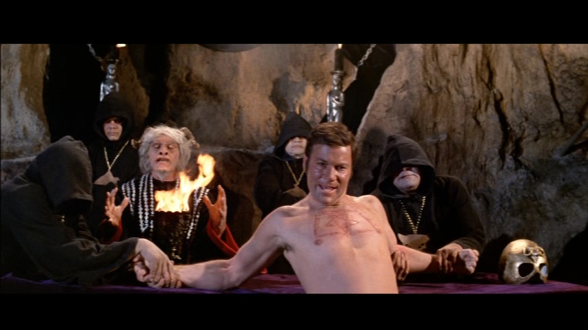 horrific special effects. More LaVey material can be found in "Hail Satan!" (8m4s) with Blanche Barton, author of the biography The Secret Life of a Satanist, telling stories about her 13 years with the Church of Satan leader and the evolution of its practices as well as LaVey's tangential involvement in Fuest's earlier The Abominable Dr. Phibes. Though he greatly enjoyed most of the actors, apparently Shatner was a little annoyed by all the press attention given the LaVey instead. (Also, John Travolta apparently does a mean Marilyn Monroe impression.) Finally the disc closes out with a gallery of location Polaroids (7m57s) (complete with tons of radio spots), a poster and still gallery, and three TV spots.