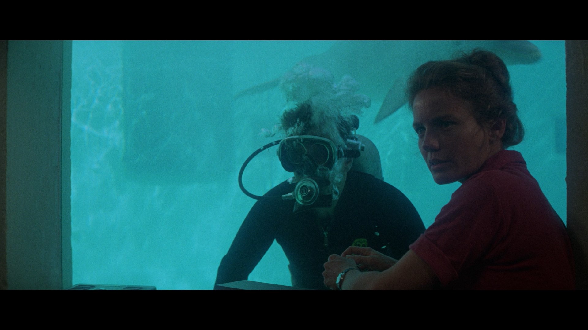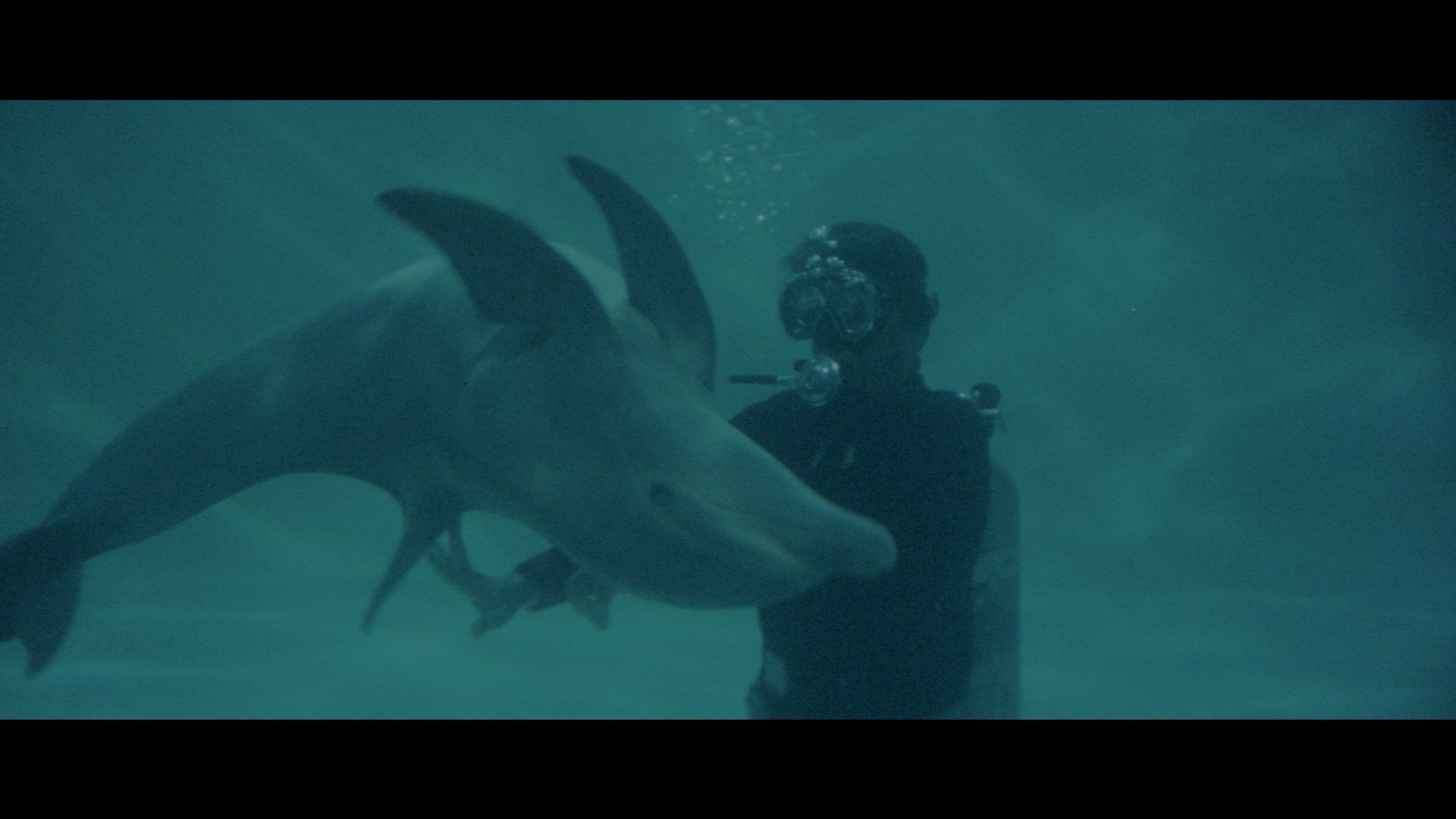 In the Bahamas, scientific researchers Jake and Maggie Terrell (Scott and Van Devere, real-life spouses and frequent pairs in films like The Changeling) have developed a method of verbal communication with a dolphin, Alpha, nicknamed Fa. A newly-arrived female dolphin, Bea, causes them to rethink their approach when some