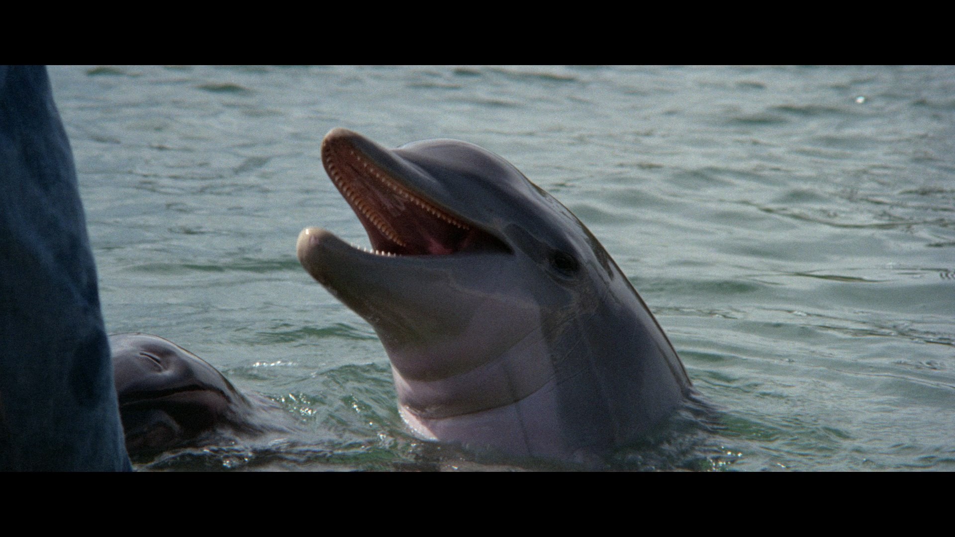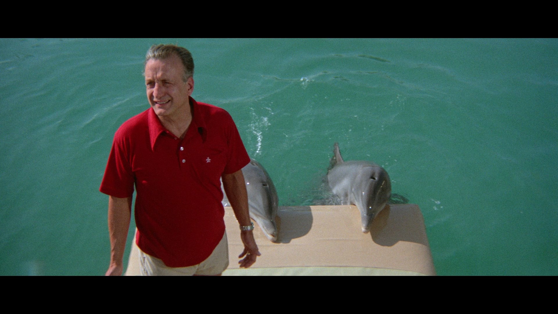 Fairly easy to see ever since its theatrical release by AVCO Embassy, The Day of the Dolphin turned up regularly on TV for years after its 1976 network TV debut. Embassy released an essentially unwatchable, heavily cropped VHS in 1986, while the first letterboxed version appeared on DVD in 2003 from Home Vision with a reissue in 2006 directly from its half-parent company, Image Entertainment. That transfer looked fine for the time, albeit with some visible vertical squishing, and it came with a trivia gallery, dolphin bios, a "Birth of a Dolphin" interview with Buck Henry (12m19s), and "Landing the Role" separate chats with actors Leslie Charleson (6m47s) and Edward Herrmann (13m6s). In 2020, Kino Lorber released the film on Blu-ray and DVD featuring a much-improved widescreen transfer from a Studio Canal-provided 4K restoration with the correct proportions, nice color, and a good 2.0 English DTS-HD stereo track with optional English subtitles. That release also comes with an audio commentary with this writer and Howard S. Berger, so it obviously can't be evaluated here. Also included are the three prior video interviews from the DVD, here stitched together in one 32m16s reel, along with a standard def (and spoiler-laden) theatrical trailer, a radio spot, and bonus trailers for They Might Be Giants?, Bank Shot, Where's Poppa?, Harry in Your Pocket, and Silkwood.