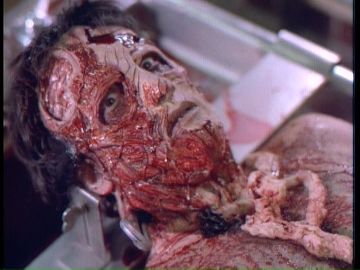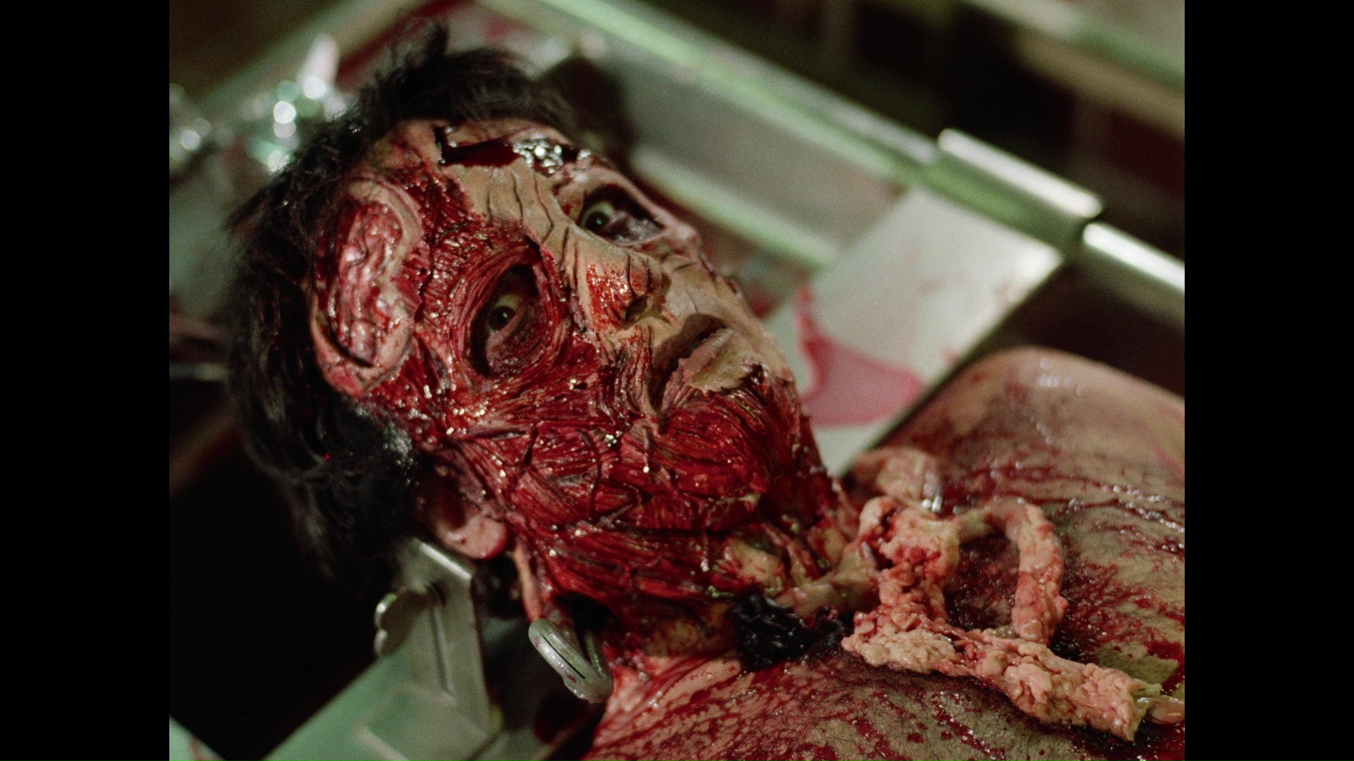 films versus more mainstream ones. They also discuss one major novelty of this film: an '80s horror film take takes place entirely in daylight and doesn't rely on jump scares. A second audio commentary, also new, features the lively podcasting gang at The Hysteria Continues offering their own take on the film. Among the highlights: pointing out the power tool mayhem that would never have flown had this gotten a U.K. release back in the day; tying the film to the direction of the slasher craze which was on a down-slide at the time; the joys of spotting Slayer graffiti in the background; and the brief trend of mixing hard rock and horror films, to just give you an idea. Quite a fun party track, especially if you're a fan of the film. Star Ruth Collins, who has the most flamboyant role, appears for a new interview, "Tina's Terror" (17m56s), discussing the unusual way she got the role after it had already been cast with someone very different, her fond memories of her director, and the inside scoop on that unforgettable rooftop chicken-eating scene. She also verifies the stories about the last-minute negotiations involved in her brief topless scene, which wasn't in her original contract. In "Movie Madhouse" (19m), director of photography Larry Revene explains some of the shortcomings of the production (including a short script that necessitated the inclusion of those Slaughter clips and a completely needless second unit), his connection to getting this role via a gig on an Armand Weston production, the art of doing wheelchair dolly shots, and an unforgettable directing mantra from Friedman: "Think cleavage." Special make-up effects creator Vincent J. Guastini turns up for the third and final new featurettes, "Morgues & Mayhem" (17m38s), which is quite an entertaining peek at how he was just starting out at the time learning the ropes from masters like Dick Smith, with the effects for this film "done out of my mother's pantry." He's full of stories about the resourceful methods used to create the effects as well as tangents like the homeless people and rumored dead bodies in the real asylum location. He also points out a gaffe with a blood tube that will forever alter the climax of the film once you've noticed it. The earlier DVD featurette with Kogan, Friedman and Tasgal is ported over, and a stills gallery (3m5s) is also included. The reversible packaging design sports a new cover design by Justin Osbourne, and in the first pressing only, an insert booklet is included with liner notes by Made for TV Mayhem's Amanda Reyes.