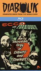 The  original DVD of Ecco and The Forbidden was letterboxed (in the case of the first film) but non-anamorphic. Both films in the 2019 revisit feature new transfers with Ecco from the internegative and The Forbidden from the sole existing print; both are loaded with splices and fading but still represent considerably improvements over the old DVD with a lot more detail on display. English SDH subtitles are provided as well for the DTS-HD MA English mono audio tracks. Ported over from the DVD in standard def is "I Want More" (32m33s), a B&W short about exhibitionist counterculture practices in L.A. (like a guy drawing on a woman's bare butt in a coffin) reported by a guy overlooking Sunset Blvd. In "The Bandit" (15m21s), producer David Goldstein shares his very colorful memories of the gun-toting Cresse, reveals the one film that was too much for Swedish cinemas to handle, tells a crazy story about a confrontation with a cop, and explains the purpose of an unusual room in his office. The full frame theatrical trailer for Ecco is also included, complete with an awkward paraphrased quote from Hamlet.