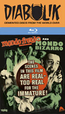 original DVD of Ecco and The Forbidden was letterboxed (in the case of the first film) but non-anamorphic. Both films in the 2019 revisit feature new transfers with Ecco from the internegative and The Forbidden from the sole existing print; both are loaded with splices and fading but still represent considerably improvements over the old DVD with a lot more detail on display. English SDH subtitles are provided as well for the DTS-HD MA English mono audio tracks. Ported over from the DVD in standard def is "I Want More" (32m33s), a B&W short about exhibitionist counterculture practices in L.A. (like a guy drawing on a woman's bare butt in a coffin) reported by a guy overlooking Sunset Blvd. In "The Bandit" (15m21s), producer David Goldstein shares his very colorful memories of the gun-toting Cresse, reveals the one film that was too much for Swedish cinemas to handle, tells a crazy story about a confrontation with a cop, and explains the purpose of an unusual room in his office. The full frame theatrical trailer for Ecco is also included, complete with an awkward paraphrased quote from Hamlet.  "What is your world? How do you know what is beyond the beyond? Most of us don't even know what is behind the beyond." If that intro makes your head hurt, just wait till you watch all of Mondo Bizarro, another '66 semi-fabricated mondo film from Frost and Cresse.