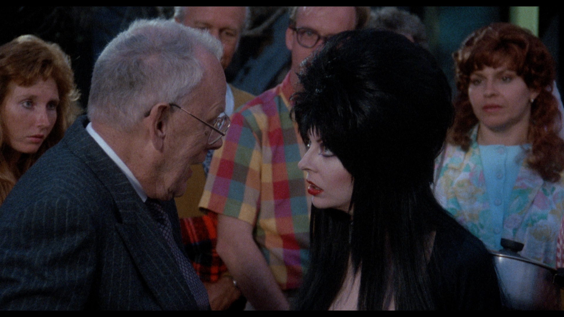 When her L.A. hosting gig goes sour after a screening of It Conquered the World thanks to a gropey new boss from Texas, Elvira decides to reinvent herself as a Vegas act thanks to a new inheritance from her great-aunt, Morgana ("Is that timing or what?"). However, to claim it she has to travel to the ultra puritanical town of Falwell, Massachusetts,