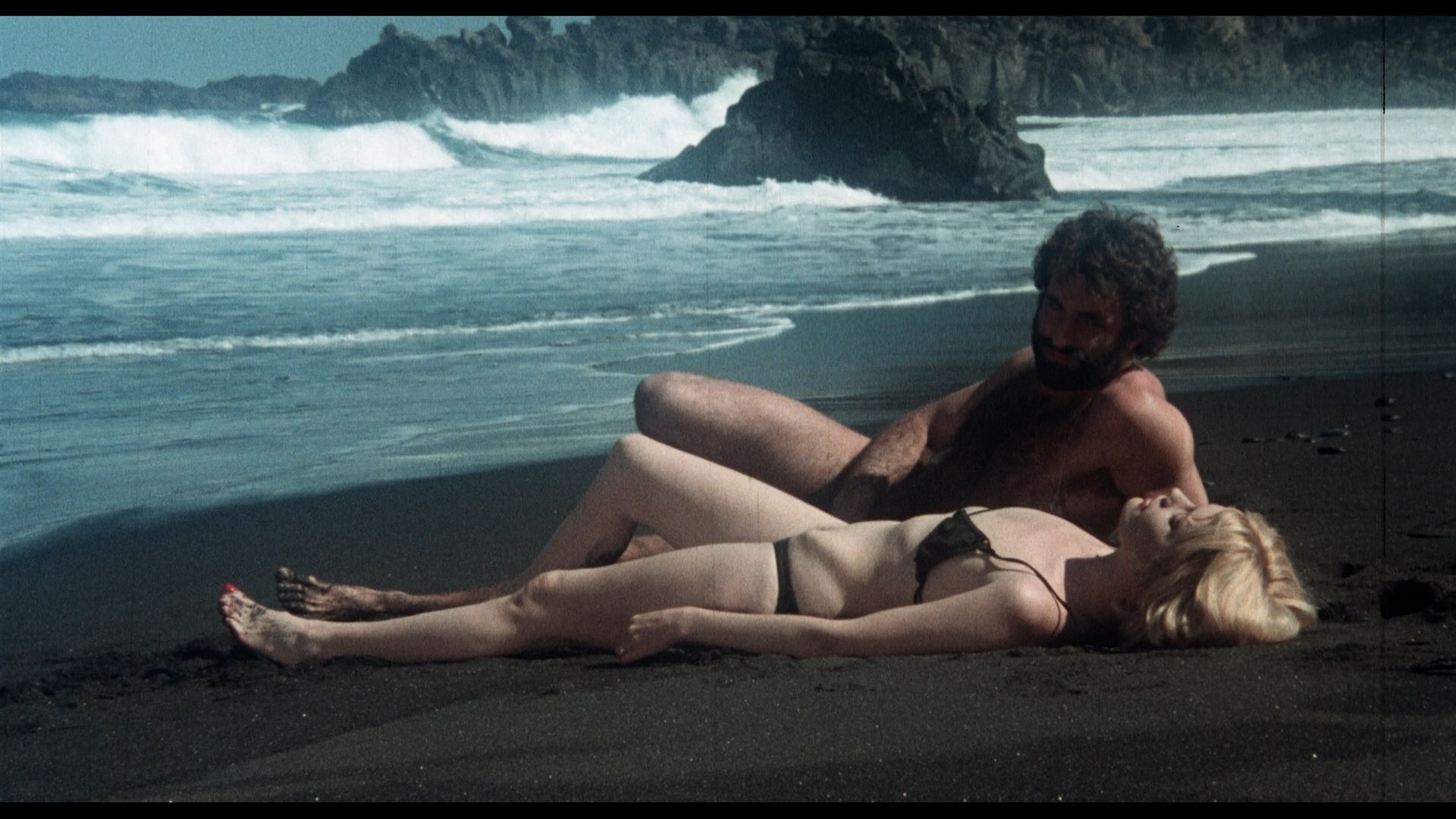 debut Blu-ray release pieces together the best existing Spanish and German prints that's a much more coherent experience than the VHS versions that once floated around (plus a bootleg DVD as The Angel and the Beasts). This one is also set on the Canary Islands and feels very Jess Franco as well (in a different way), with sexploitation director Hubert Frank (Vanessa, Melody in Love) doling out the jungle sleaze in heavy doses here. While taking a private plane ride with her married sugar daddy, danger-seeking Susi (Adriani) ends up parachuting for her life when their flight takes a dive. She ends up on a tropical island populated by Henno (Black Venus' Ceinos), Wim (Godó), Silvia (Rey), and Brit (Wondratschek),