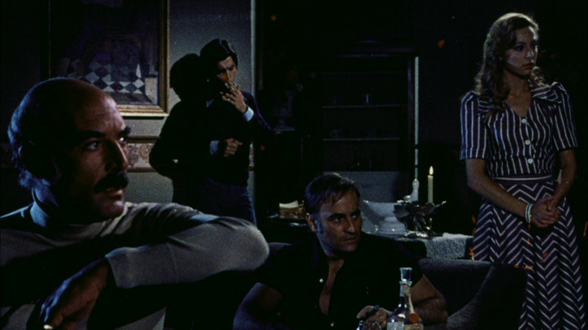 the misleadingly titled Sins of a Nympho (Bacanal en directo) from 1978. Things kick off at a nightclub where a bunch of youths are shaking it in a nightclub to Riz Ortolani's disco music from Primo Amore. Word goes around about a film producer (Conde) throwing a party at his place to film for his next movie, and everyone seems game except for buttoned-up couple Estela (Hernández) and Fermín (Martín). A visit from pals Chema and Lorena, both cheating on their significant others, and an afternoon of motocrossing are enough to persuade them-- especially the very resistant Estela-- to partake in the evening, which starts off with some innocuous dancing and pot smoking. However, soon everyone's getting naked, doing Roman, drag, and Nazi role-playing, and having intense discussions about various issues of the day, with random cutaways to a pair of motorcyclists on their way indicating something sinister might be brewing.