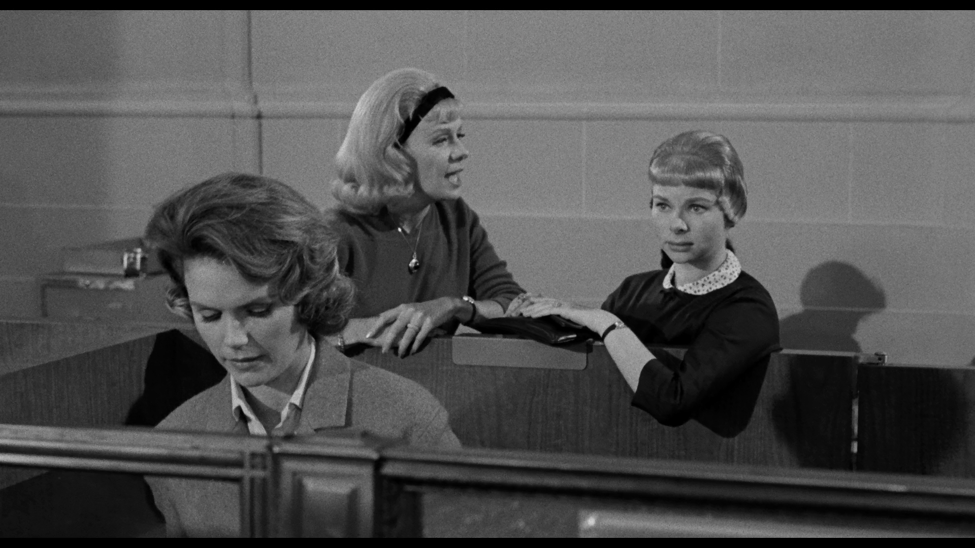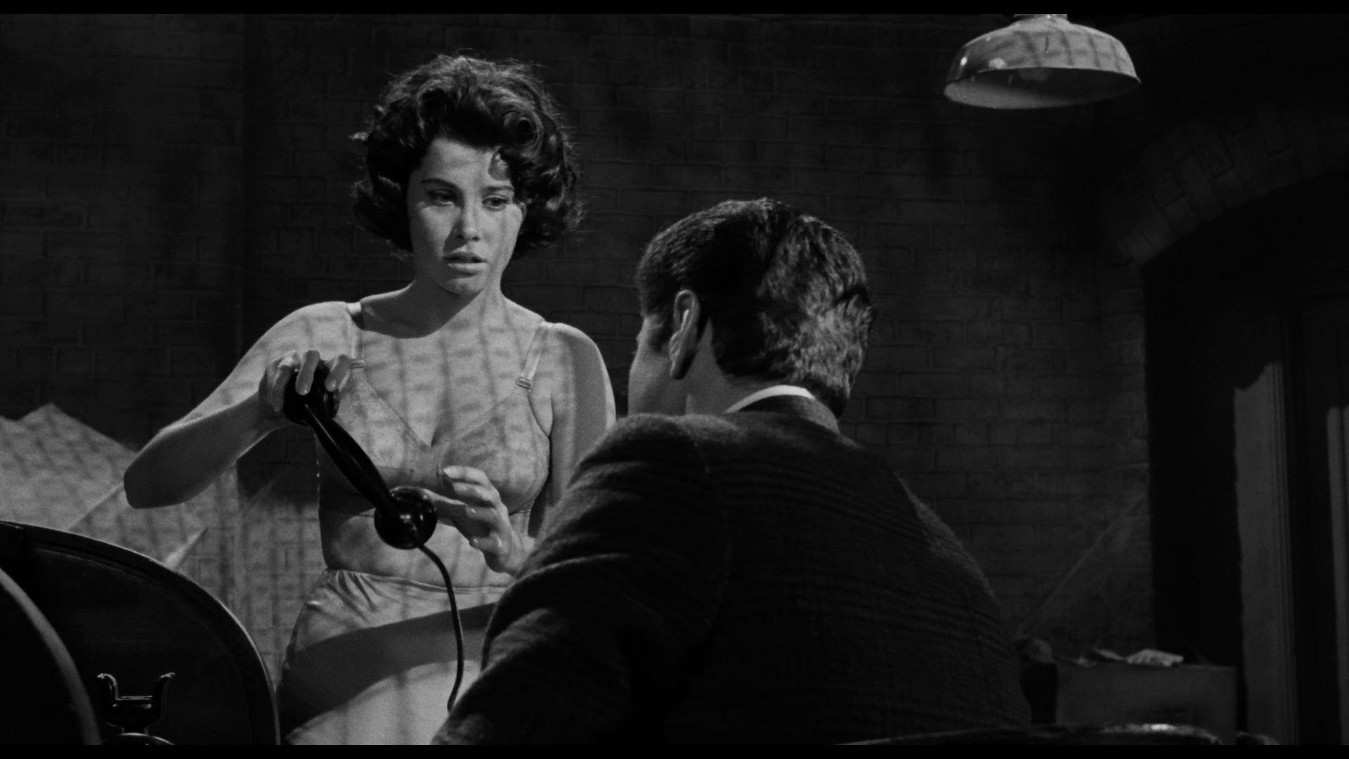An odd film out in so many ways, this taut, noir-esque crime thriller with horror overtones is easily the darkest film by director Blake Edwards, who had just come off of the Production Code-baiting hit Breakfast at Tiffany's and made this almost back to back with his acclaimed alcoholism drama, Days of Wine and Roses, and his most famous cinematic contribution, The Pink Panther. The Oscar-nominated star of Days, Lee Remick, stuck with Edwards for this film as well and used her piercingly beautiful eyes to great effect here as Kelly Sherwood, an unassuming San Francisco bank teller who comes home one evening (in a neighborhood called Twin Peaks!) to be confronted by a wheezing psycho who wraps a gloved hand over her mouth and threatens to bring both harm to herself and her younger sister, Toby (Powers), if she goes to the authorities about an impending heist he's planning to pull off at her bank -- one she will perform herself.