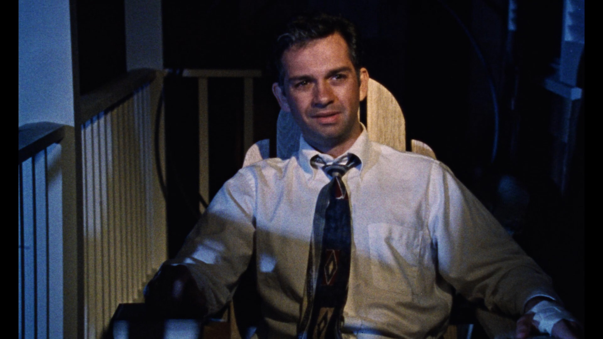 One year later, Buck flipped the same idea to the husband's point of view with "Home." A husband (Betsworth again) consumed by suppressed rage lives with his oblivious wife (Caleo) and daughter, resulting in an explosion of violence. Finally, the most positive of the bunch, "Prologue" (2003), begins as an aging man (Mahoney) in a small town watches with anguish as