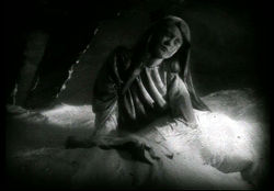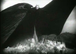 astounding stream of marvelous visionary concoctions. Not to be outdone by special effects, Jannings (The Blue Angel) nearly blasts through the roof with his dynamic, often hilarious portrayal of Mephisto, a charistmatic and terrifying apparition. Whether dishing out quirky flourishes with his hands or, in the most audacious image, looming high in his black cloak to bring the plague onto a small German village, Jannings is simply unforgettable and makes his "human" costars quite dull in comparison. (Keep an eye out as well for Gretchen's brother, played by William Dieterle, future director of Portrait of Jennie and The Devil and Daniel Webster.) The film only makes one significant misstep by tacking on a trite, unnecessary celestial epilogue after already reaching a perfect, wrenching closing shot during the climax; however, moral watchdogs at the time probably insisted on a clearcut moral message at the end lest viewers feel too alarmed by the preceding events.