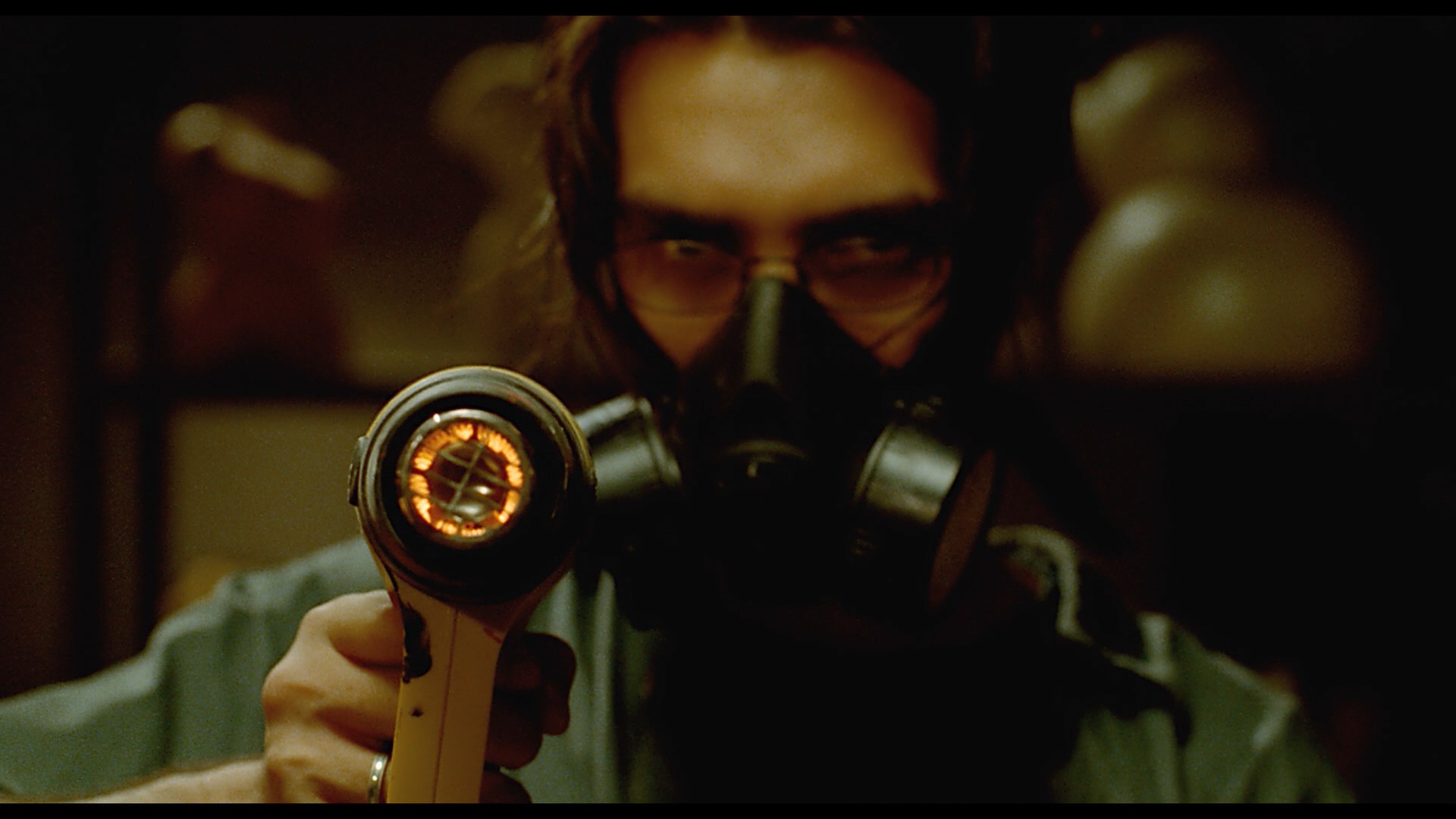 and given a very stylized color scheme that starts off very flat and beige before filling up with more contrast and color as things get weirder. By the end it's full of eye-popping reds all over the