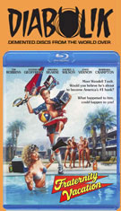 fans than the usual teen sex comedy, Fraternity Vacation was New World's contribution to the scene in 1985 alongside such competitors as Once Bitten, Private Resort, Weird Science, Just One of the Guys, and Porky's Revenge. Like all of those, it went on to become a cable TV mainstay for a couple of years but gained a great deal of notoriety for its cast including a soon to be famous Tim Robbins (who had a small role in the same year's The Sure Thing) and Stephen Geoffreys and Amanda Bearse, both of whom starred in Fright Night later the same year. That film's composer, Brad Fiedel, also performs duties here for a very synth-laden soundtrack also peppered with lots of Bananrama songs. On top of that you get Britt Ekland as a bemused barmaid, John Vernon as a jailer who says "Rapists make my flesh crawl," Frightmare's Nita Talbot, the tragic Charles Rocket as a nightclub DJ, Inferno's Leigh McCloskey, and most spectacularly, a scene with Re-Animator's Barbara Crampton and Bride of Re-Animator's Kathleen Kinmont that earned this a place in the nudity hall of fame.