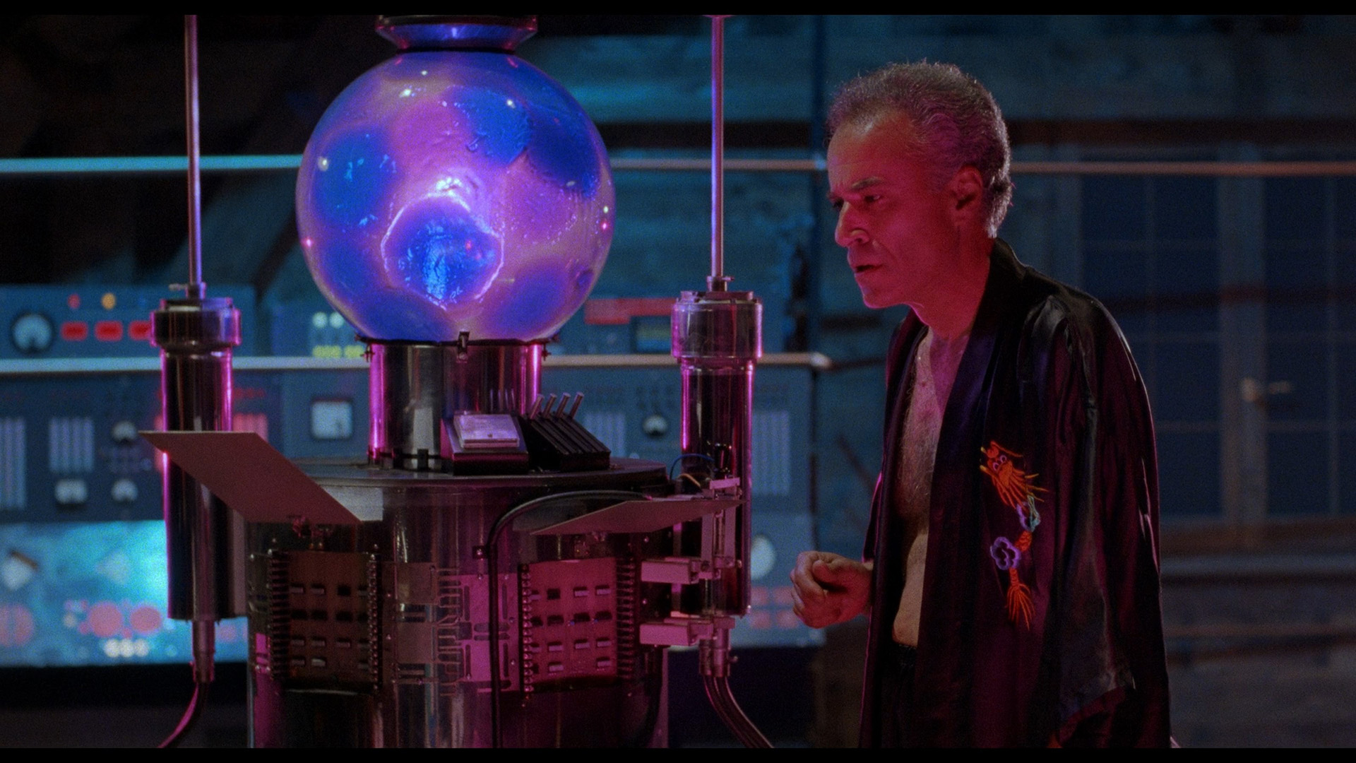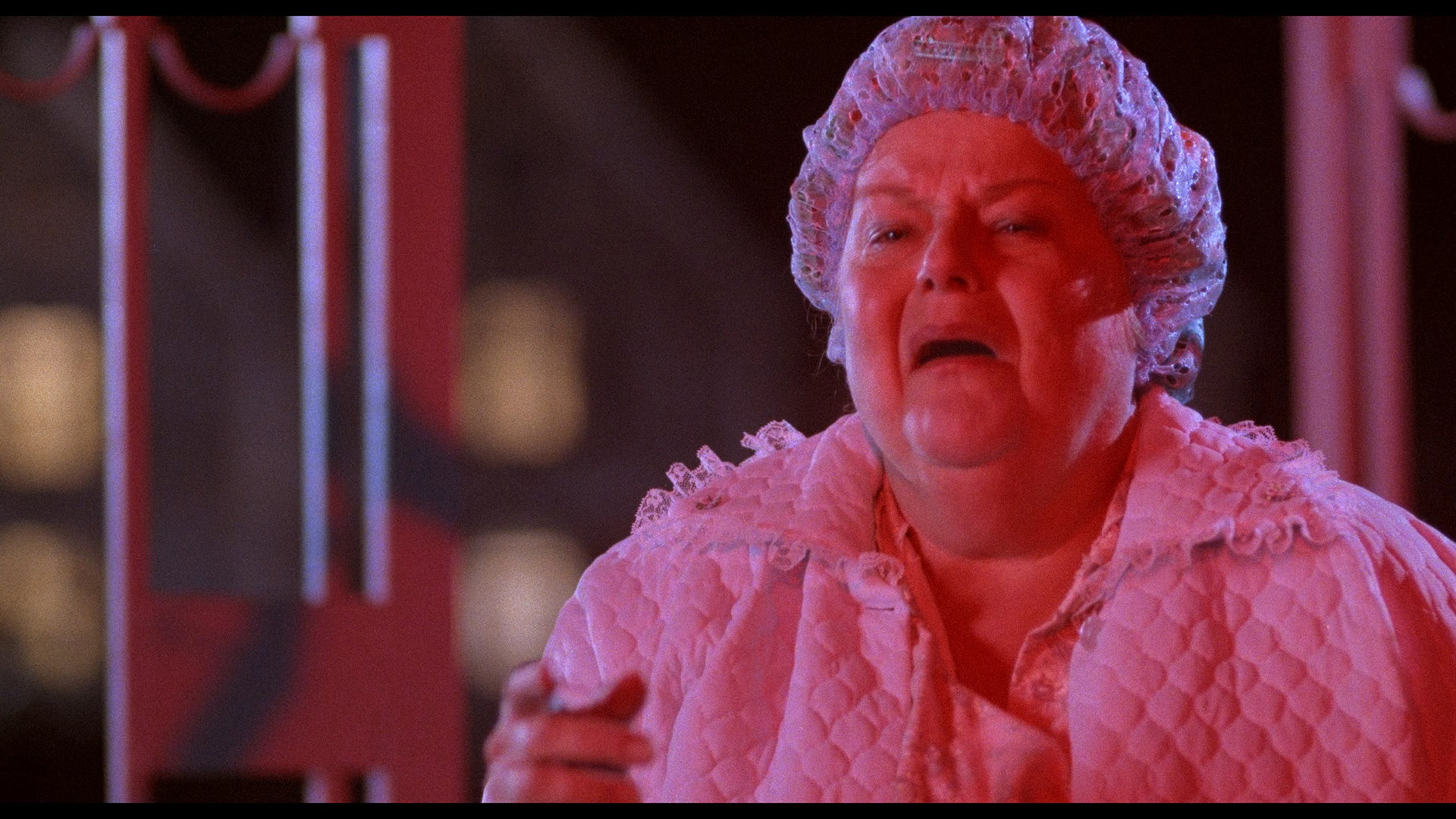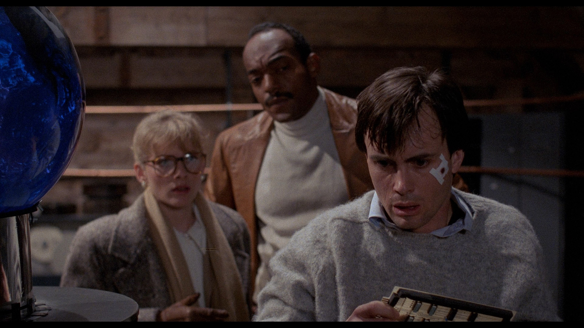 All of that was ported over for the film's U.S. Blu-ray debut in 2013 from Scream Factory, which looked great and featured DTS-HD MA English 5.1 and 2.0 audio options with English subtitles. Newly added for that release were a second commentary with Dennis Paoli (who worked on multiple Lovecraft adaptations with Gordon and explains here the tricks of adapting one of fantastic literature's most influential authors) and several featurettes: "Multiple Dimensions: The Creatures & Effects of From Beyond" (23m42s), a look at the effects with John Buechler, John Naulin, Anthony Doublin, Mark Shoshtrom; "Paging Dr. McMichaels" (19m51s) with Crampton who cites this as her best role to that time and a personal favorite among her collaborations with Gordon; "A Tortured Soul" (17m36s) with Combs talking about the arduous makeup process, an accidental moment of trauma involving some little Italian kids, and his approach to a character who spends most of the film in a state of psychotic hysteria; and "An Empire Production" (5m2s) with executive producer Charles Band covering the decision to make the film quickly after Re-Animator exploded on home video. That release was slightly preceded onto the market by a U.K. release from Second Sight, with featuring the original director/cast commentary, storyboard comparison, "A Director's Perspective," and "The Editing Room," plus several different extras commissioned via Severin Films starting with "Stuart Gordon on From Beyond" (20m37s), a hybrid of a 2012 Q&A following a theatrical screening of the film with Gordon (who's also captured separately on camera) and his wife, regular actress and monster victim Carolyn Purdy-Gordon, chatting about the creation of this film and its distinctive look and tone among Lovecraft adaptations. "The Doctor Is In" (13m45s) brings back Crampton to discuss more about her fondness for the role, her gradual affection for horror, her early career, and what she brought to her approach as a very unusual doctor driven by curiosity and inner demons that manifest over the course of the story. "Monsters & Slime: The FX of From Beyond" (20m47s) has more stories from Naulin, Doublin, and Bartalos about the creation of various masks and practical applications to pull off the creatures (Pretentius and otherwise), while "Gothic Adaptation" (16m5s) has Paoli going over the "powerfully weird" allure of Lovecraft stories and his long-running associations with Gordon over the decades even going back before college.