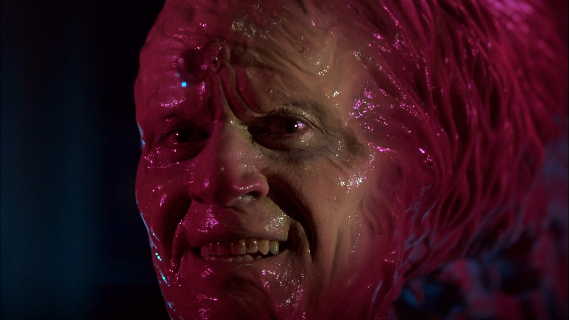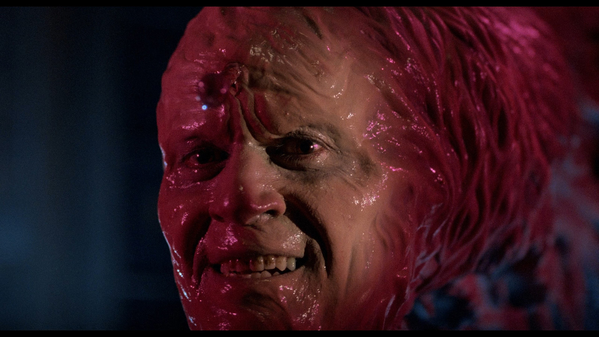 Mining territory similar to the following year's Brain Damage, Gordon's squishy study of addiction and perception largely benefits from the enthusiastic performances of its cast. Crampton and Combs always make a terrific team (as evidenced later by their strong dramatic work in Castle Freak), while Foree provides some welcome comic relief and drops out of the film far too early. The impressive creature effects are gloriously self-indulgent when they kick in, a reminder of the good old days before CGI effects took over the monster genre, and in a marked departure from the more realistic look of Re-Animator, this one is drenched in stylized lighting with pinks and lavenders indicating the lifting of the veil between dimensions.