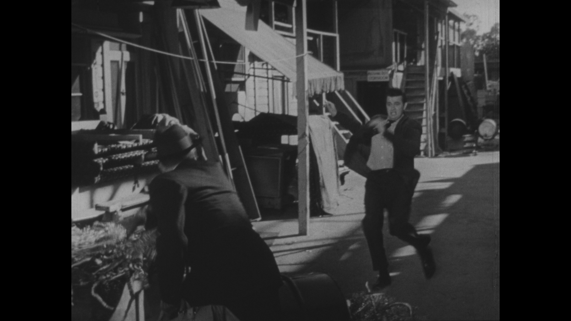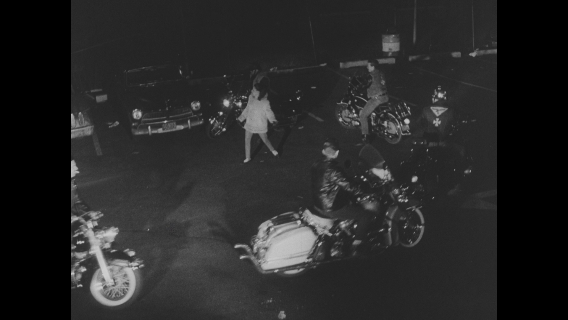 The aforementioned DVD of this film, which was taken from a somewhat murky but okay print, also featured a batch of trailers (both both films on the disc plus The Cats, The Crawling Hand, Damaged Goods, Four Guys and a Gun, Our Man Steel, and The Weird Lovemakers) and "delinquent goodies" including three intermission breaks, a gallery of exploitation art, and two shorts, "Headed for Trouble" (32m52s) and "Dance, Little Children" (25m7s). In 2025, AGFA and Something Weird added the film to their line of Blu-ray ugrades featuring a new scan from the SWV 35mm print. The detail is much sharper here, element damage is virtually nonexistent, and more image is visible in the frame, though the black levels head the other direction here and are more on the pale and milky side. Optional English SDH subtitles are provided for the