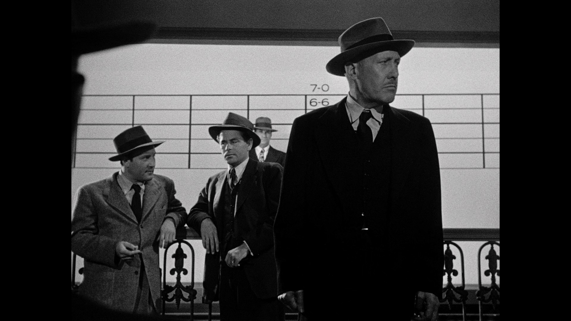 On to disc two, The Undercover Man from 1949 comes from cult director Joseph H. Lewis who brought the world Gun Crazy, Terror in a Texas Town, My Name Is Julia Ross, and So Dark the Night. Inspired by a Collier's article about the downfall of Al Capone, the film charts the efforts of U.S. Treasury agent Frank Warren (Ford) to cut through a jungle of intimidated witnesses and legal obstacles as he tries to break into the syndicate that's kept everyone under a threat of silence. Complete with occasional voiceover and a gritty docudrama-style approach, it's very much in line with other salutes to the department like Anthony Mann's T-Men two years earlier -- albeit anchored here by Ford's robust central performance and Lewis' tight visual approach as the film weaves through witness line ups, reticent cops, and domestic tension with Frank's wife, Judith (Foch again), whom he's determined to keep safe as he tackles an intricate web of tax evasion. Though obviously fictionalized including the removal of Capone himself, it's also a worthy snapshot of the challenges faced with taking down a man of his stature and a precursor to the TV sensation that would arrive later with The