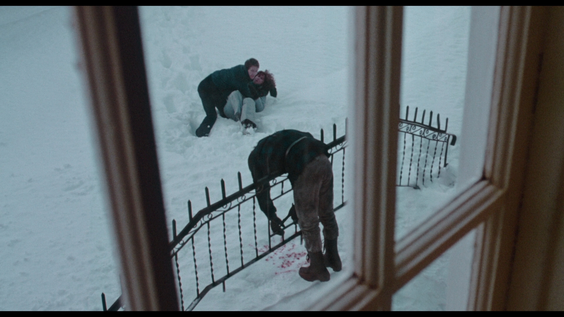 In 2026, Canadian International Pictures revisited the film on Blu-ray with a fresh 4K-sourced scan from what has to be the same print; it looks pretty comparable with a bit more detail and some variations in color timing, notably a cooler look during the opening daylight sequence and a more consistent look for the snow without veering into green or pink tints. The DTS-HD MA English 2.0 mono track sounds about the same and is fine for what it is, with optional English SDH subtitles provided. The previous commentary is replaced here with a new one featuring Spier, Ord, and co-writer/associate producer Doug MacLeod chatting about the making of the very cold film where the setting did much of the heavy lifting to get everyone in the right