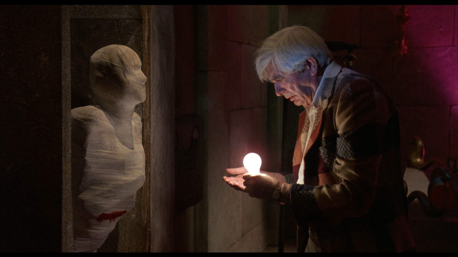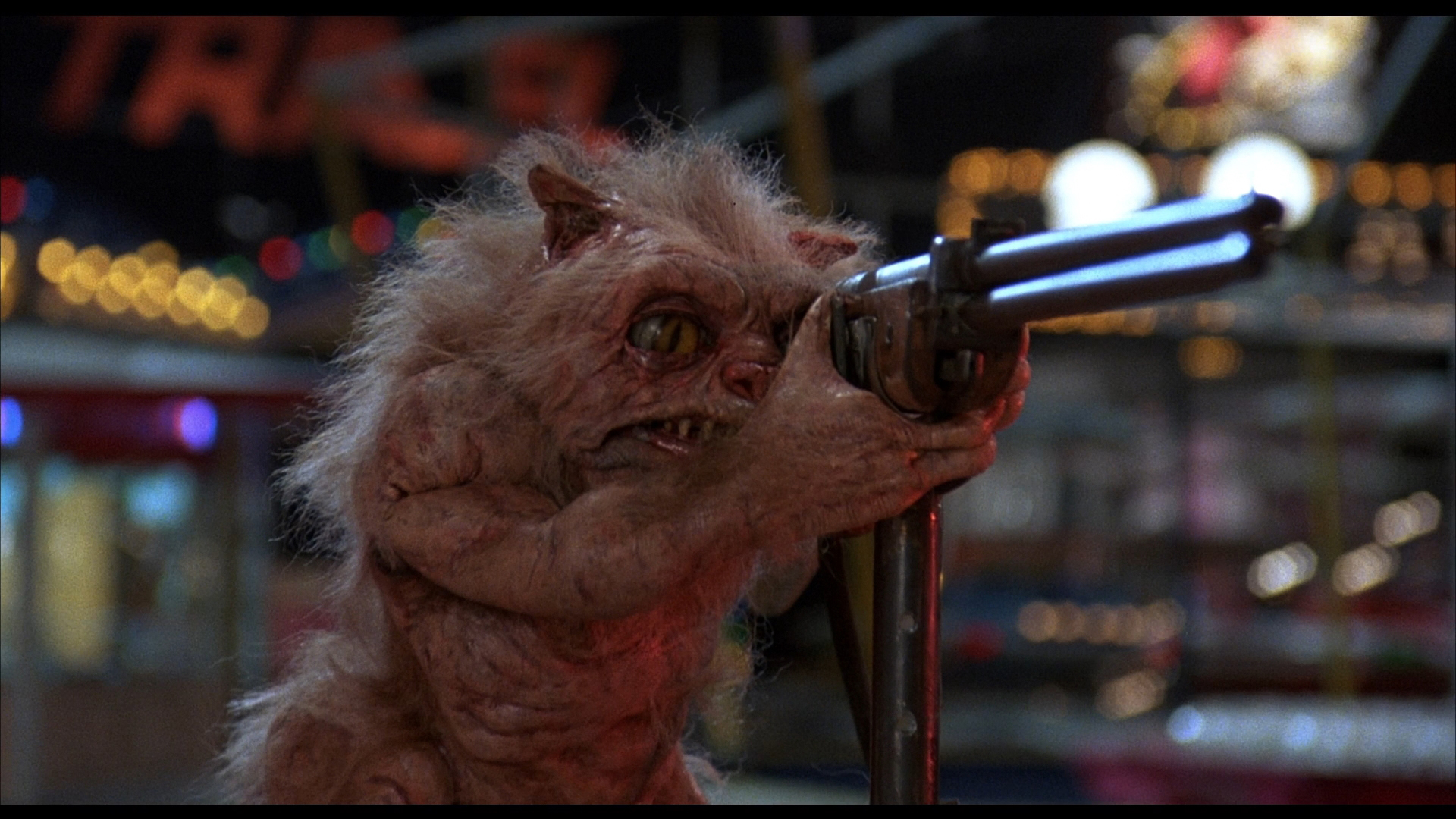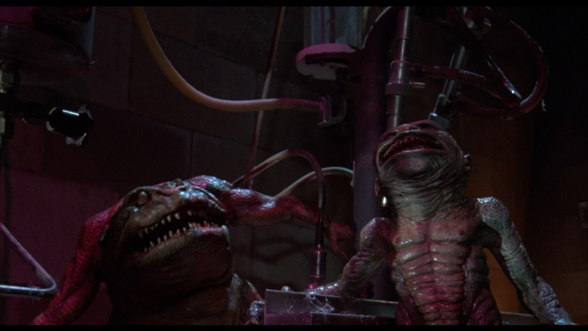 In more recent years with its MVD Rewind Collection, MVD managed to pull off some miraculous releases including an uncut (and gorgeous) 4K UHD of Swamp Thing and a ridiculously impressive-looking UHD of the first Ghoulies. Their announcement of Ghoulies II led to a 2023 Blu-ray release taken from the same scan with word that a possible UHD was in the works but would take more time to lock down; that Blu-ray combines basically everything worldwide including the trailer, the Paoli intro and interview, deleted scenes, a 1m50s photo gallery, and "More Toilets, More Terror." In this case you get the original LPCM 2.0 surround mix with optional English subtitles, and it still sounds excellent (though it's worth noting some dialogue scenes have baked-in sibilance that seems to be inherent in the original recording on all releases, especially around the 31-minute mark). In 2024, MVD released a combo UHD and Blu-ray edition featuring the same Blu-ray disc and a UHD featuring - finally! - the full unrated cut of the film in addition to the usual theatrical version. In this case it's a new 2024 16-bit scan from the original camera negative with HDR-compatible Dolby Vision, and the extra footage has also been given a new scan looking much better than ever before. The bar was set high with the first film, and it's easily met with this one as well. Note that Blu-ray frame grabs are present here for now, but UHD ones should be coming shortly. The LPCM 2.0 surround mix is on par what we've had before with optional English subtitles, plus the trailer and Paoli intro on the UHD. As usual you also get a "collectible 4K LaserVision mini-poster" folded in the package, perfect for hanging up in the office.