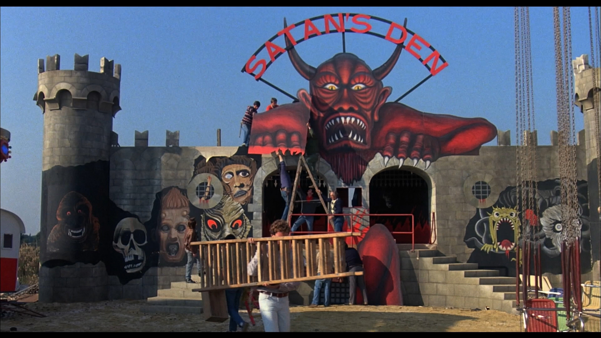 spook attraction Satan's Den, Uncle Ned (Dano) is less than thrilled with the situation and experiments with a spell he found in a book, which rouses a bunch of ghoulies who stowed away on the carnival's truck at the beginning. Soon the beasts are wreaking havoc in the lives of the carnies including Ned's truck driver nephew Larry (Martin), theatrical and diminutive Sir Nigel Penneyweight (Hard Rock Zombies' Fondacaro), and potential love interest Nicole (Pumpkinhead's Remsen). Before long the carnival is turning into a bloodbath with pendulums, guillotines,