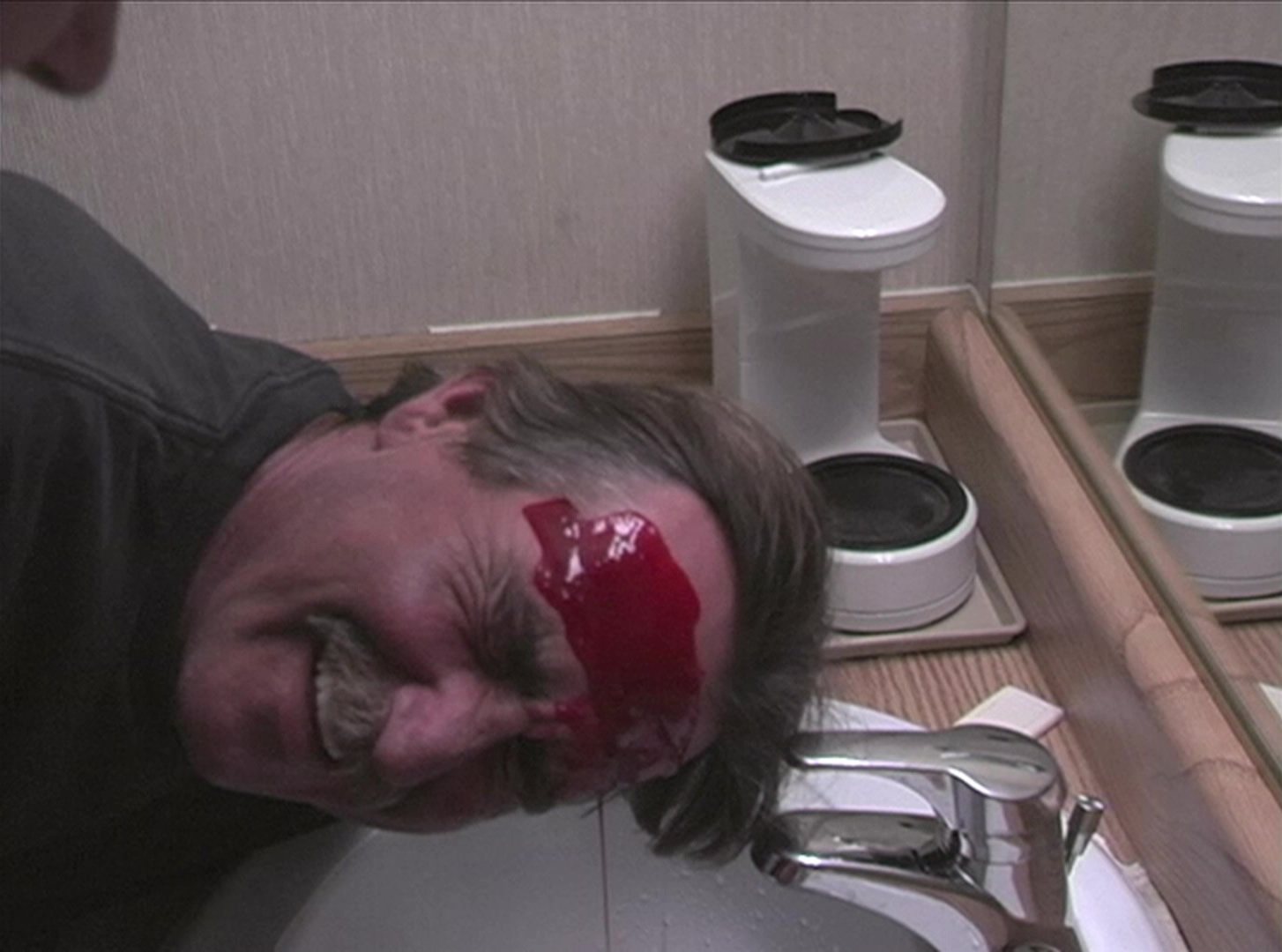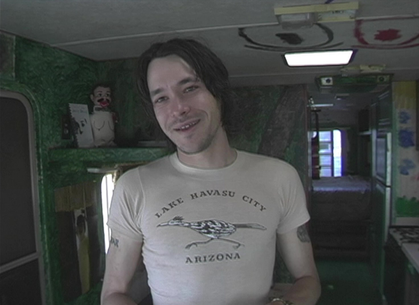 Disc one features an audio commentary for the feature with Rifkin and producer Mike Plante elaborating tremendously about the conditions of Giuseppe's productions at the time in Ventura (he's since moved to Austin, Texas), with anecdotes along the way about most of the eccentrics in front of the camera. Also included on the disc is the theatrical trailer. However, the real goodies lie on disc two including the presentation of the entire 75-minute Garbanzo Gas feature, which is about as astonishing as you'd expect. If you ever wanted to see opening credits with a guy in a cow suit singing a song about a chicken crossing the road to get to a whorehouse, this is just your ticket. There isn't much of a plot aside from the tribulations of that cow, but you won't care. This film is presented in its lower def glory with windowboxing to avoid any unsightly upscaling issues, but you can always zoom it in if you feel so inclined. Anyone who hasn't seen the main feature might run screaming from the room, but there's a lot of pretty hilarious and clever wordplay and inventive insanity here if you're in the right frame of mind. Also, the songs are pretty hysterical, especially "Food Court." "Schlong Oysters" compiles 25 minutes of deleted scenes from the documentary, which ranges from a look at Giuseppe's handmade trailer wall art to street filming outtakes. In "Visual Medium Observation," Plante joins Giuseppe for a video interview in 2012 (clocking in at 28 minutes) with the title coming from a written piece about the process of how people process visual media. Topics bounce all over the place including his film inspired by addiction to his other modes of expression like novellas and some of his favorite films like Bring Me the Head of Alfredo Garcia and El Topo, not to mention an artistic epiphany while watching Grumpy Old Men. In "Bill Nowlin Lives," Giuseppe interviews one of his regular actors for 14 minutes about the process of how their films came together. "5th Wheel" is a Giuseppe TV pilot he shopped around to all the networks; the mind boggles what might have happened had it wound up on ABC in primetime. Finally, "Directed by Giuseppe" is a montage of credits and opening titles for many of his films woven together for an astonishing 5-minute experience. The package also comes with a liner notes essay by Bill Gibron drawing parallels to Godard and Warhol and an essay/review about the film by Mark Borchardt. Amazing stuff.