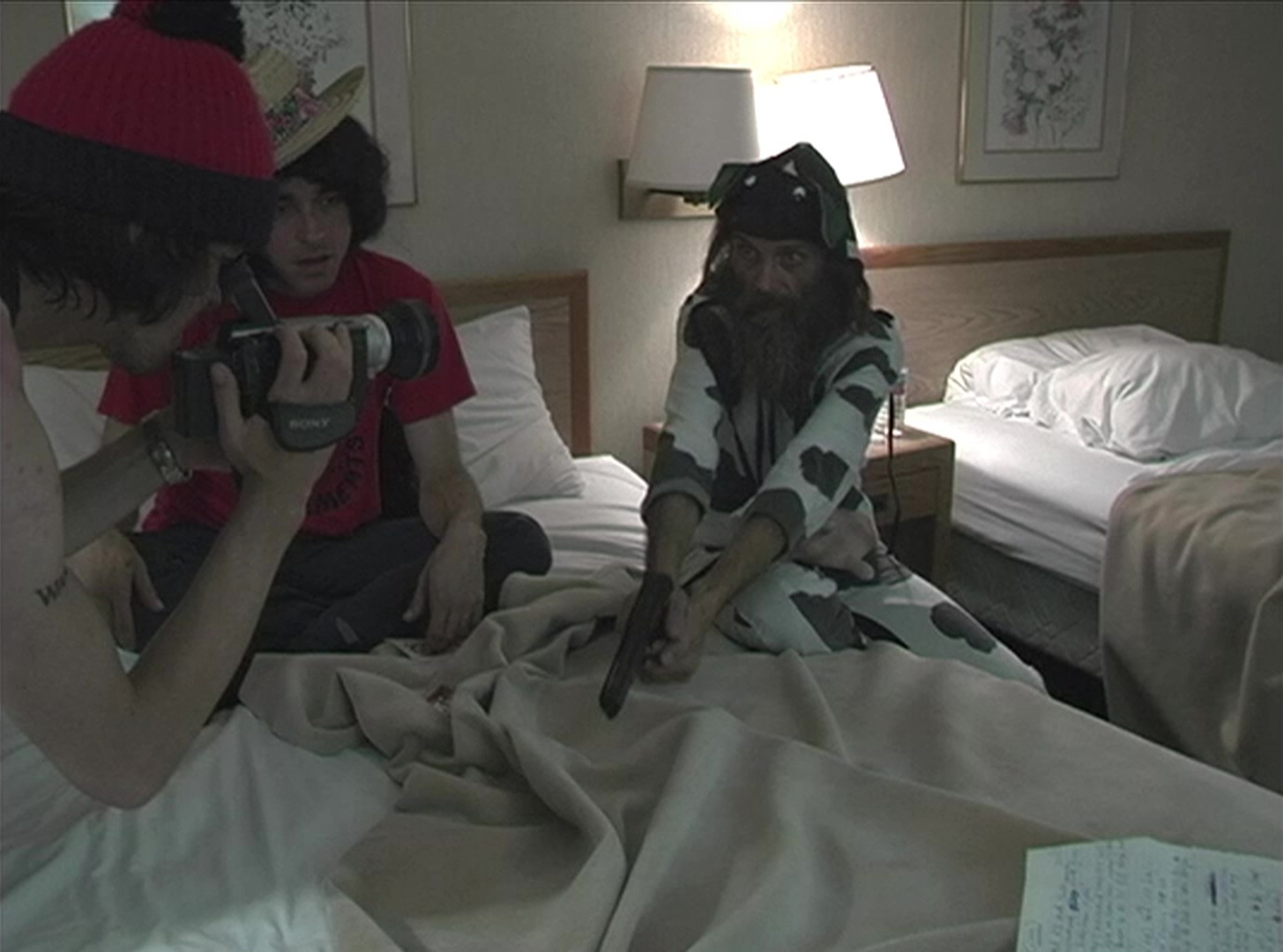 The main focus here is the creation of Garbanzo Gas, which was inspired by Giuseppe's decision to try kicking meat and the digestive consequences of eating too many garbanzo beans. He performs virtually all crew duties including directing, photographing, and editing, with dialogue fed to the actors on the spot while the camera's rolling (and sometimes delivered in mangled form that bests what's written on the page). Inspired by Fassbinder's In a Year of 13 Moons, the film is a mad tale about an elderly cow (one of his regular actors, Vietnam Ron, dressed in a cow suit), who hops in a cab for a break from the slaughterhouse and winds up tangling with a bizarre cast of characters at a hotel. With lines like the indelible "I'm gonna whong my whoppty doo on your nipple chunks," you should have some idea of what to expect.