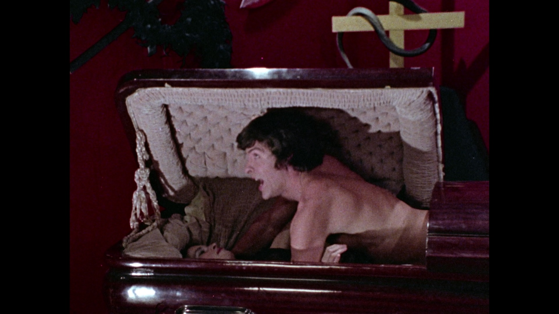Made in the pre-Deep Throat era when hardcore features were just starting to get a real theatrical foothold, Necromania is cheap, dumb, and weird, exactly how you want it. The sex scenes are about as mechanical as you can get, especially the softcore version in which everyone just rubs their faces and tongues around their fellow actors' crotches enough to avoid going all the way. Credited as "Don Miller," Wood was supposedly slated to appear in one scene as a necromancer, just one of the many mysteries here including the cast "who wish to remain anonymous." Arnold, Lutze, and Bond are all very familiar faces though and were busy crossing back and forth in the early '70s between softcore and XXX, and while this isn't exactly the greatest acting showcase for any of them, they acquit themselves well enough here. In addition to the best a/v presentation of the film so far (as usual in DTS-HD MA 2.0 English mono with optional