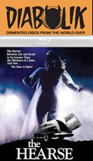 part of their eight-film Drive-In Cult Classics Vol. 2 set, later reissued verbatim by Mill Creek-- who then trotted it out yet again compressed too much for comfort for a 12-movie collection called Cult Terror Cinema. The Scorpion release from 2012 (paired up with Blood of Dracula's Castle) looks close to the BCI in terms of framing and compression, but the quality's a few notches better thanks to a fresh transfer from the original negative. Not surprisingly, this is packaged as a "Katarina's Nightmare Theater" release with hostess Katarina Leigh Waters gamely getting plowed down by runaway hearse before she appears to cover some trivia about the film including little tidbits about the major cast members. Plus you get to see her with a fake mustache, which has to be a first. Extras include the trailer and a phone interview with screenwriter William Bleich, who talks about getting his first writing gig here, the inspiration for the story, and his thoughts on writing horror including some of his future work for the small screen.