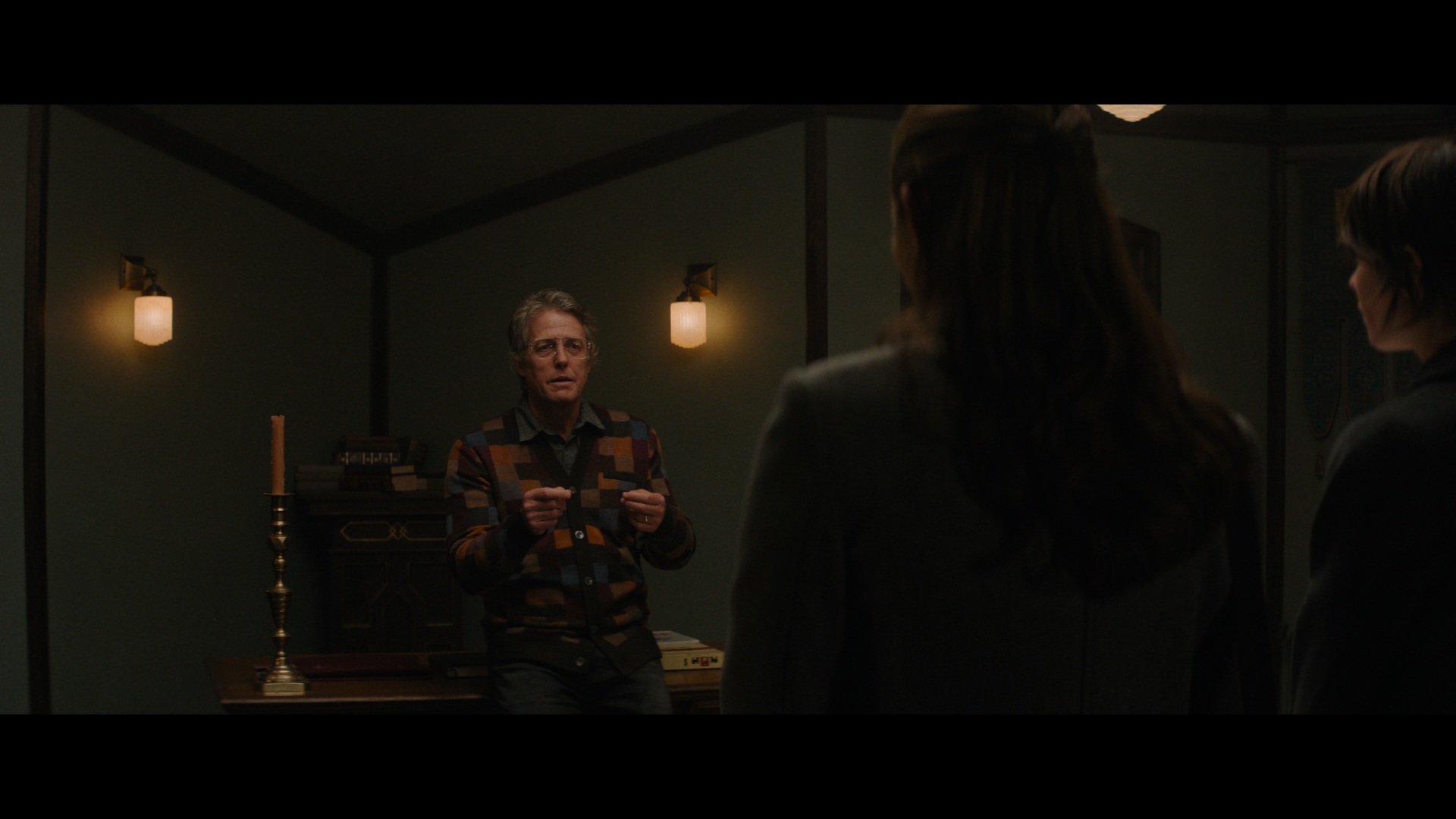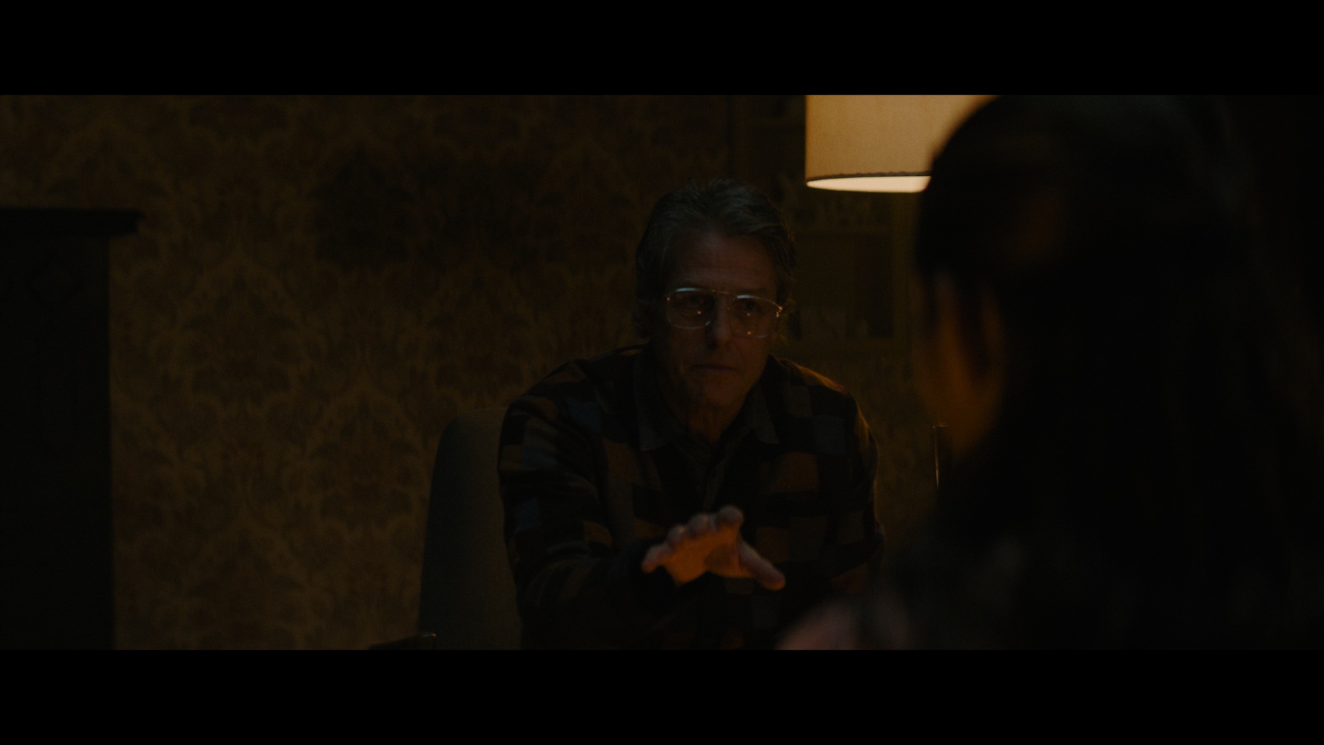In keeping with some of its prestige titles like Midsommar and The Green Knight, A24 released Heretic directly as separate Blu-ray and UHD editions (the latter a site exclusive) with deluxe packaging including six collectible postcards with set photos by Kimberly French. The UHD looks exceptionally crisp, with HDR-compatible Dolby Vision bringing out a wide range of gradations in the numerous dark scenes and giving a warm burnished quality to the gold highlights. The Dolby Atmos English mix (with optional English or Spanish subtitles) isn't designed to be a powerhouse but does show off the attentive work