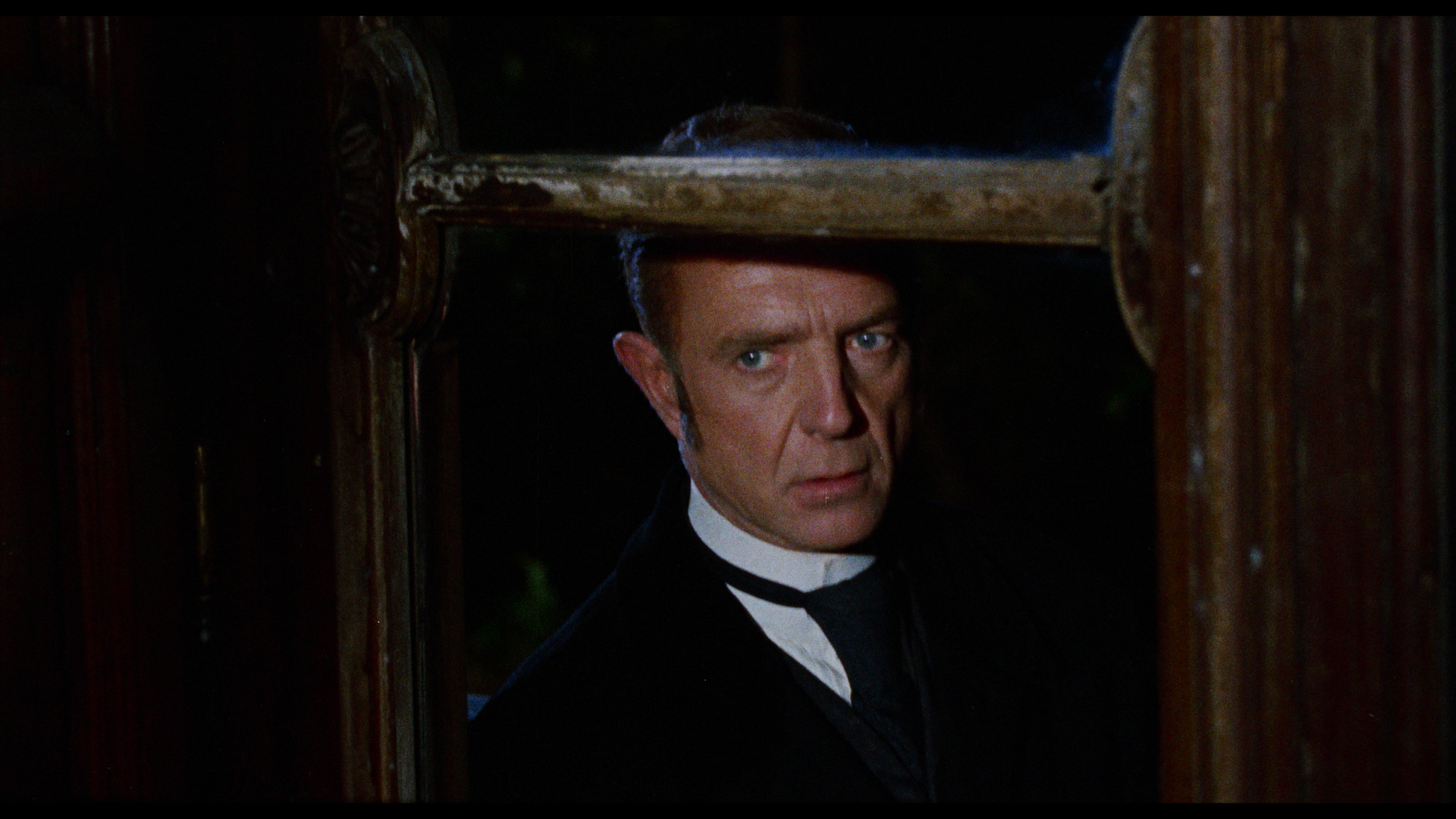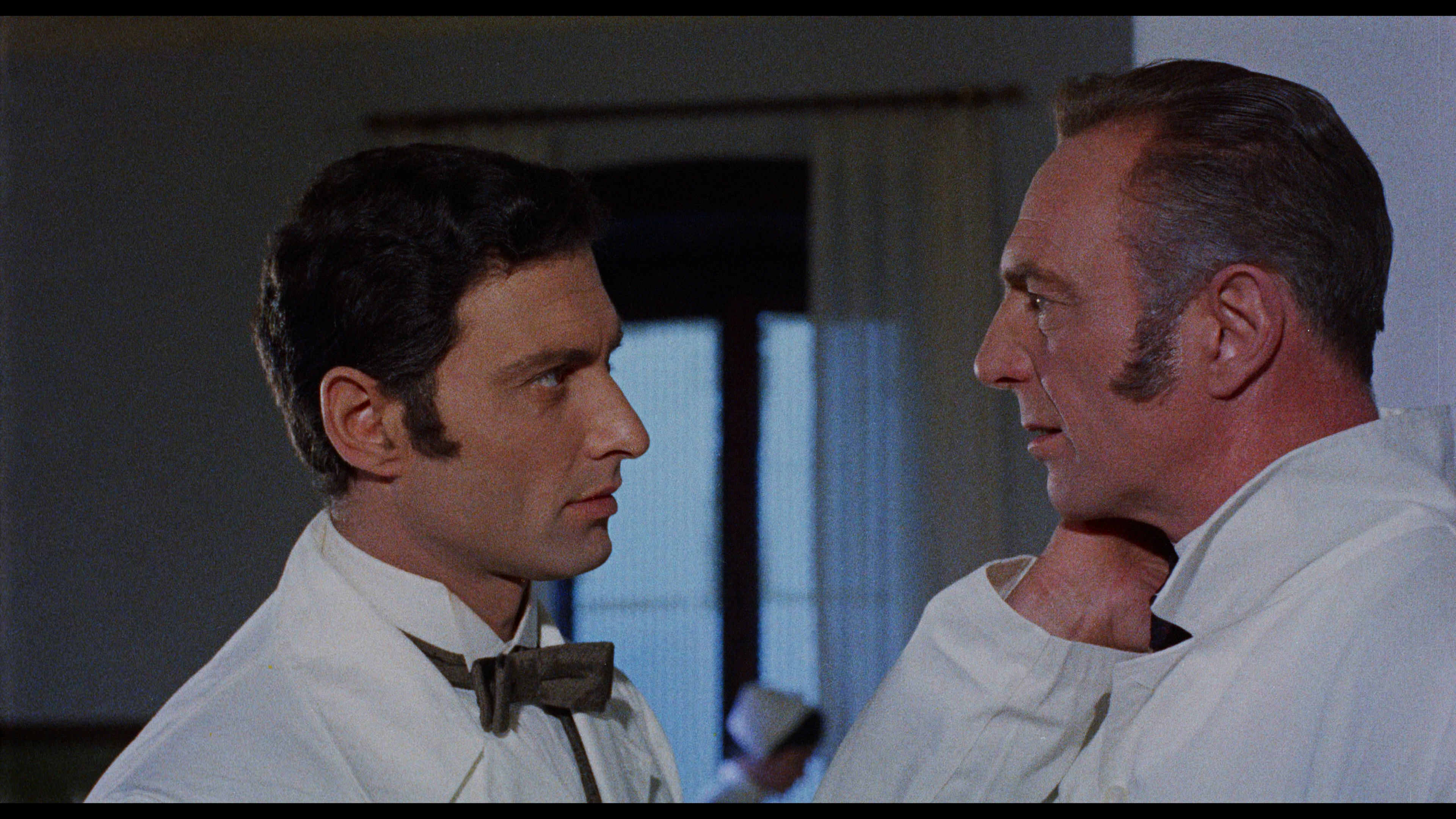 In 2023, Radiance released the first truly worthy, English-friendly edition of the uncut version of the film as a two-disc Blu-ray set in the U.K. with a second disc devoted to the U.S. Horrible Dr. Hichcock version for comparison. The main version on disc one can be played in its Italian or English versions, the latter under the title Raptus - The Secret of Dr. Hichcock, and with the respective language insert shots for elements like newspaper headlines. This new 2K restoration from the negative is a radical improvement over the German Blu-ray, with more image info and detail. Most significantly, the German Blu-ray had no color timing applied which resulted in skin tones and entire color temperatures shifting from shot to shot and eliminating any of the intended day-for-night filters. Here that's all been corrected, resulting in a more stable and enjoyable viewing experience. (See the second frame grab comparison below for one glaring example.) The DTS-HD MA 2.0 mono tracks are all in excellent shape, with optional English SDH or translated subtitles provided. Note that early in the film when Mrs. Hichcock ends the dinner party, the English dub features an awkward reverb effect resulting in some odd audio echoing for a few seconds that has always been present in that track. An audio commentary by Kat Ellinger and Annie Rose Malamet goes into the Italian Gothic, the role of the Apollonian male here versus other horror films, connections to Hitchcock films, visual and narrative perversity, and how this varies from Hammer films of the era. A second commentary by Tim Lucas is an interesting variation on his usual approach as he opens by noting that