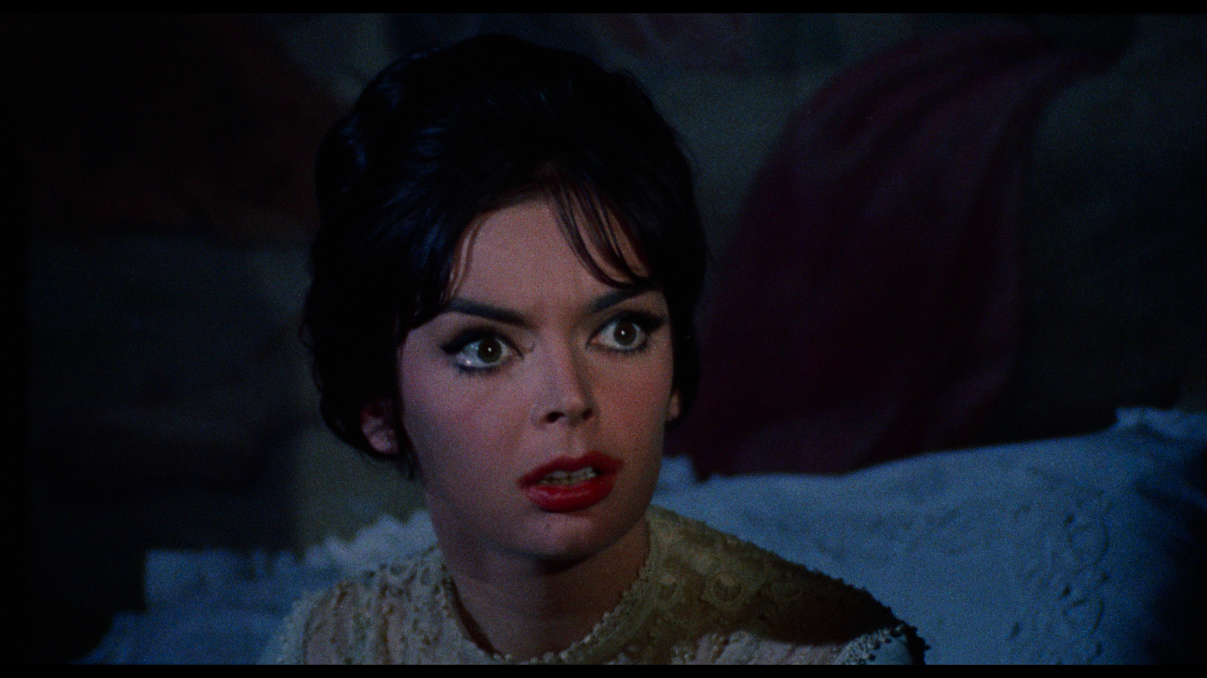 what was intended to be an updating of his original Video Watchdog article about the variant versions of the film, here delivering his greatly expanded 25-page study as a track packed with detailed info about Gastaldi's written novelization versus the two release versions. He also posits a fascinating theory behind what might have been the attraction that led our unhappy couple to tie the knot. A new interview with Gastaldi (34m19s) covers his initial early collaborations with Freda, the speedy writing of the script, his own take on the inspiration for the necrophilia aspect (disputed elsewhere by Freda), and the difference in color horror films here versus the more common monochrome that went in and out during the decade. In "Murderous Husbands: Bluebeard and the Gothic Melodrama" (28m17s), Miranda Corcoran presents a video essay about the Bluebeard story and its various incarnations throughout Gothic film including '40s melodramas like Gaslight and Jane Eyre before parsing out its influence on this film. Finally an interview with Madeleine Le Despencer looks at the confluence of necrophilia and Gothic narratives in this film, The Monk, and others, as well as mortuary chic in 19th-century Europe. Also included are a gallery of international poster art and a subtitled Italian trailer, while the package comes with an insert booklet featuring a new essay by Chris Fujiwara, an archival article by the late Alan Y. Upchurch, Lucas and Luigi Boscaino featuring interviews with Freda, Steele, Flemyng and others, and a critical overview by Cullen Gallagher.
