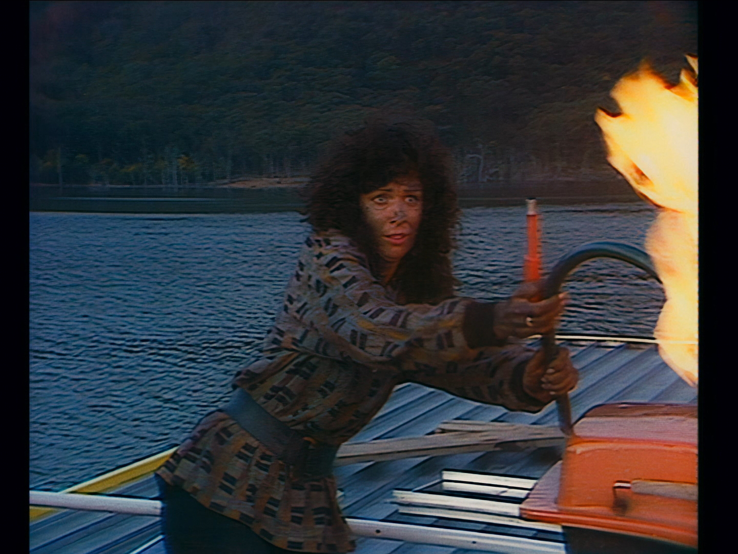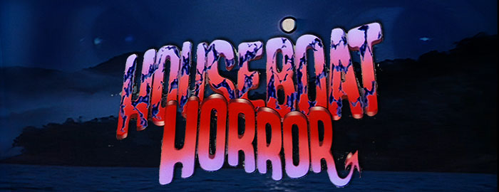 The Blu-ray edition of Houseboat Horror is a heavily loaded offering that puts most major studio releases to shame, which just goes to show how adorably insane the physical media landscape can be. The film opens with a note: "Previously thought to be lost, a master of Houseboat Horror was discovered in the personal archives of producer Ollie Martin in 2022, in the form of a Type C 1-inch videotape. Transferred from the tape source to digital, retimed from 25fps to 24fps, upscaled from 720x576 to 1920x1080 and finally