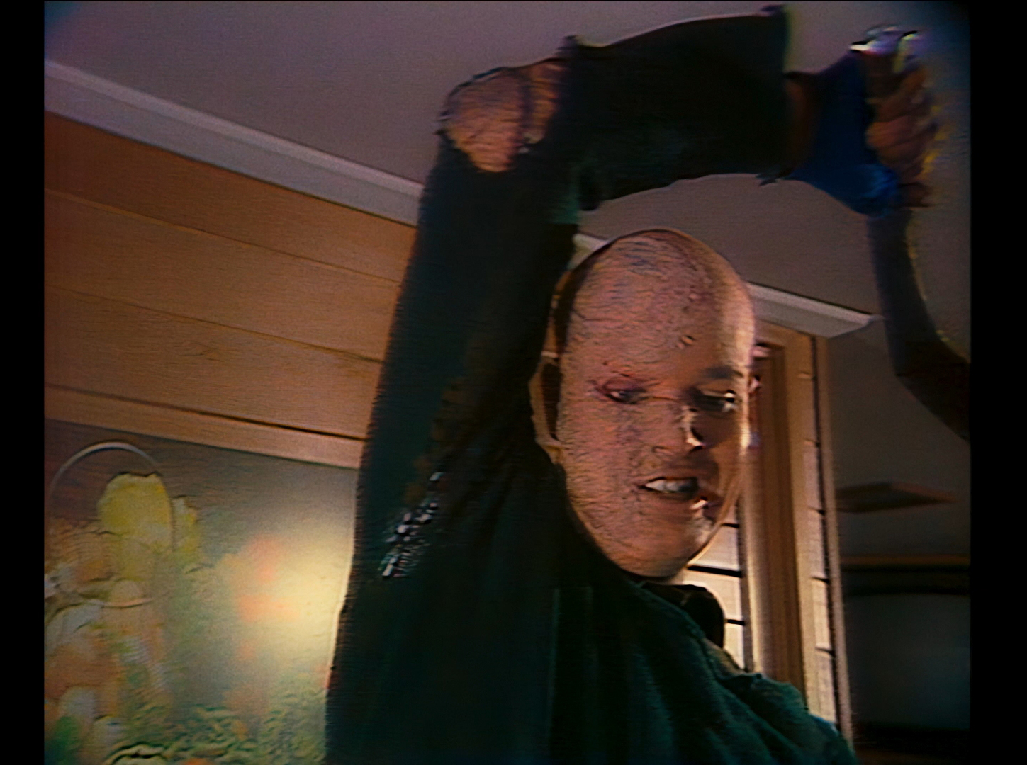 was carried out by ROAR Digital in Melbourne, Australia." This still looks very much like a 1989 shot-on-video production with all the limitations that entails, but quality-wise it's definitely in the upper end of VHS-era horror indies upgraded to Blu. There's a bit of vertical squishing to the image that appears to be baked into the source, as there's a variety of different cameras and lenses at play here depending on the scene. What's really surprising is the DTS-HD MA English 2.0 stereo track, which features a very active and spacious sound mix with the music in particular sounding great. The optional English subtitles are very welcome given how much dialogue is either mumbled or drowned out by background noise, so prepare to switch it on at regular intervals. (For some reason the captioner keeps spelling the main location as "Lake Inifiniti!") A new audio commentary by comedian Tony Martin and film historian Jarret Gahan is also a lot better than you'd expect; in the past, seeing the word "comedian" on a commentary was a huge red flag, but in this case they both know their stuff very well and have tons of info to offer about the film's production, some other horror films developed in tandem that fell by the wayside, and trivia about all the cast and crew members.