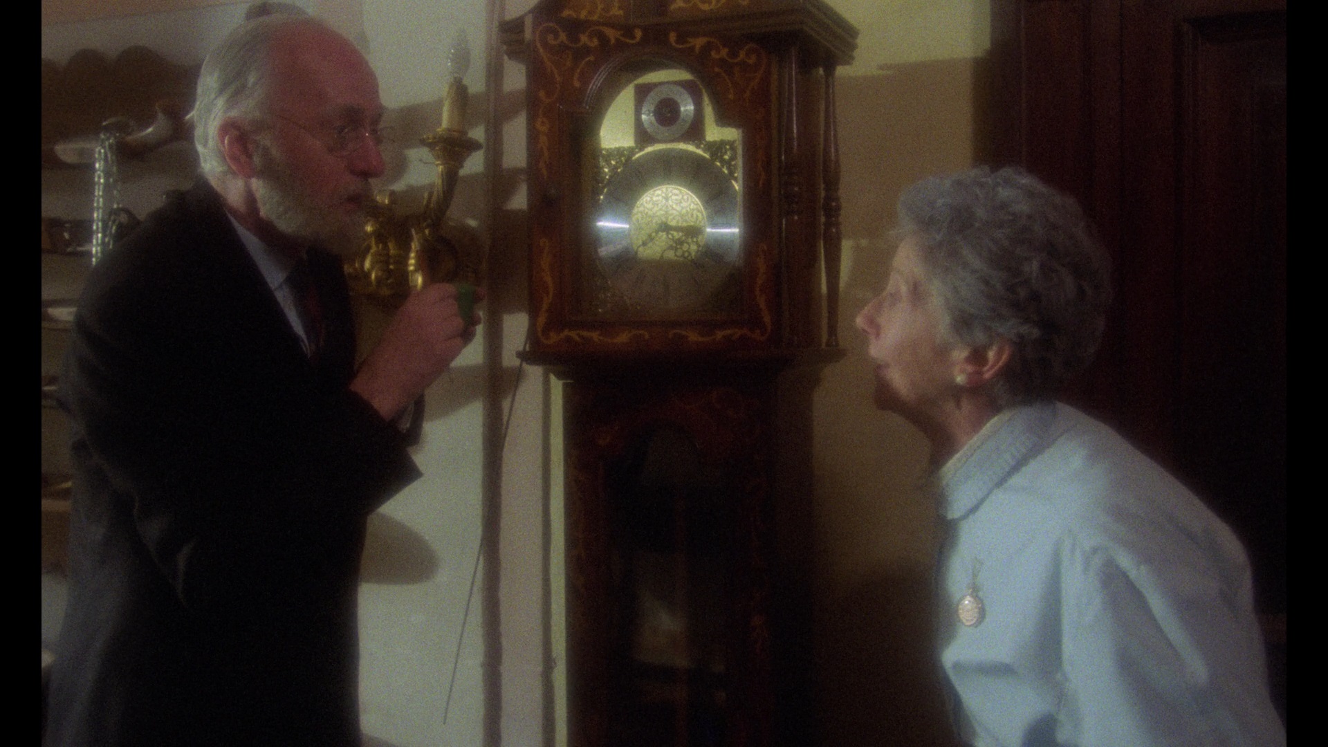 Here an elderly couple, Victor (Paoloni) and Sarah (Milne), passes the time by collecting clocks, ambling around their nicely appointed country home, and killing off those who prove to be inconvenient, such as the nosy maid (Carla Cassola) who gets impaled in the crotch. Meanwhile three semi-young delinquents (Van Hoven, Huff, and Hintz) stop off to loot the house by pulling a Clockwork Orange traffic accident story and then raiding
