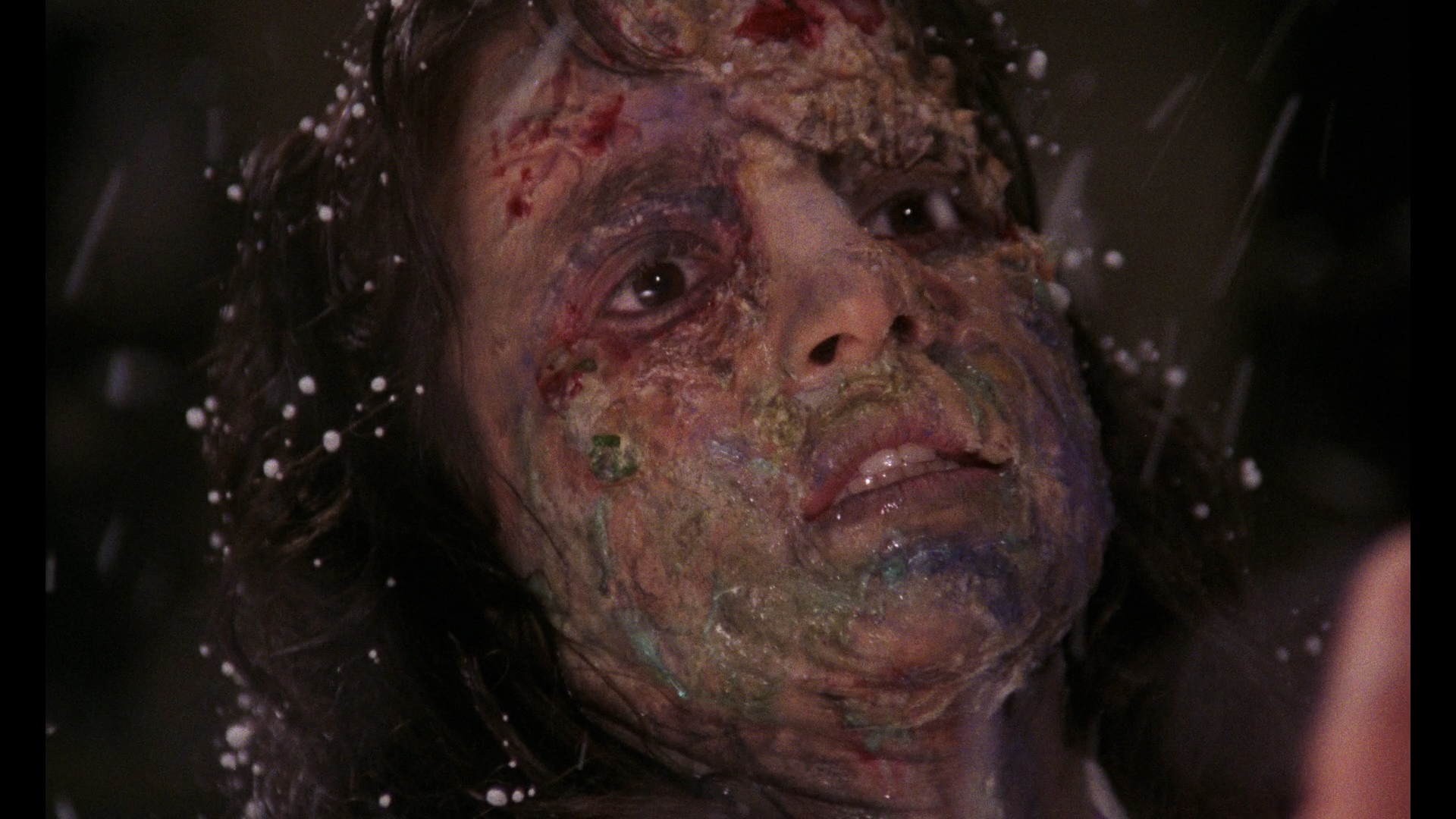 The archival interviews ported over here include all four of the ones from the Shriek Show release as well as a 6m48s one with Monreale. You also get a fascinating 71m25s(!) reel of VHS-sourced production footage (and auditions?) featuring off-the-cuff interviews with many of the principals about their backgrounds. Again you get a soundtrack CD (20 tracks) premiering Tempera's score in excellent