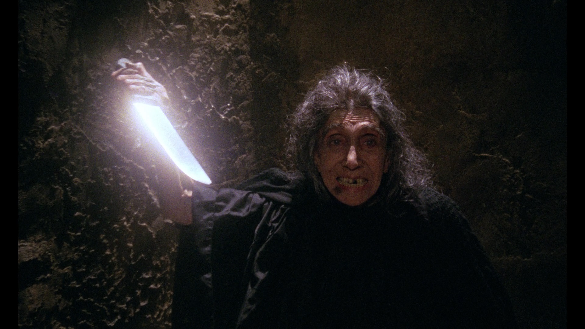Italian track here is a godsend as it's much easier on the ears. Here Ercolani and Howarth provide a new commentary going through Fulci's career at the time, Monreale's work with him and elsewhere, the production background of the series, and plenty more. In "Fulci House of Horrors" (16m43s), omnipresent set designer Massimo Antonello Geleng covers his numerous Fulci projects, his admiration for the director going back to his comedies and other genres, and the resourcefulness required on films like this to come up with eye-catching visuals for pocket change. In "Sweet Muse of Horrors" (28m55s), Monreale speaks about her career starting with a fortuitous stroll with her kitten that led to multiple Fulci projects and permanent Euro horror legend status. "Editing for the Masters" (18m5s) has editor Alberto Moriani discussing his mentor Luciano Martino, his genre-hopping assignments in the '80s, and his work for Fulci and other filmmakers like Antonio Margheriti.