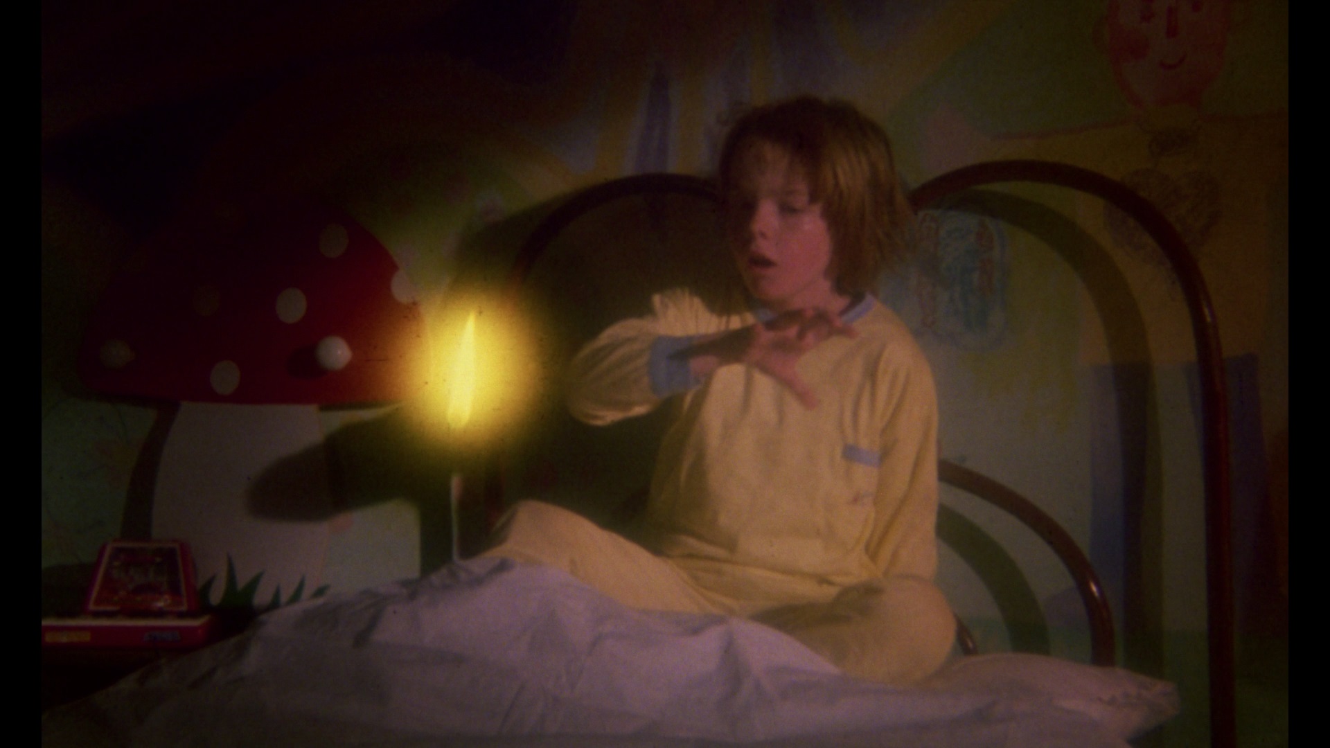 children explored in his more widely seen House by the Cemetery and Manhattan Baby, among others. As this is later period work for the director, the film's execution is bumpier than his golden age classics but still bears the unmistakable stamp of his gore-soaked obsessions. Things start with a bang, literally, as a married couple is slaughtered in their home, with the husband's head pulverized against a wall and the wife viciously knifed. The children of the deceased, Sarah and Marco, become the charges of their aunt and uncle, Marcia (The Beyond's Monreale) and Carlo (Rats: Night of Terror's Bretigniere), at the family estate. Unfortunately the grounds seem to be haunted, much to the children's delight, and cruel mishaps befall visitors including a real estate agent and the neurotic gardener (Demonia's Lino Salemme). Marcia is terrorized by the ghostly presence, which appears to manifest itself as a glowing, animated swirl of light; however, the spirits turn out to be as protective as they are ruthless, and the true villain is soon unmasked.