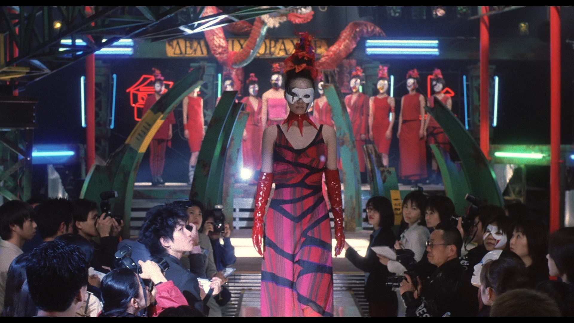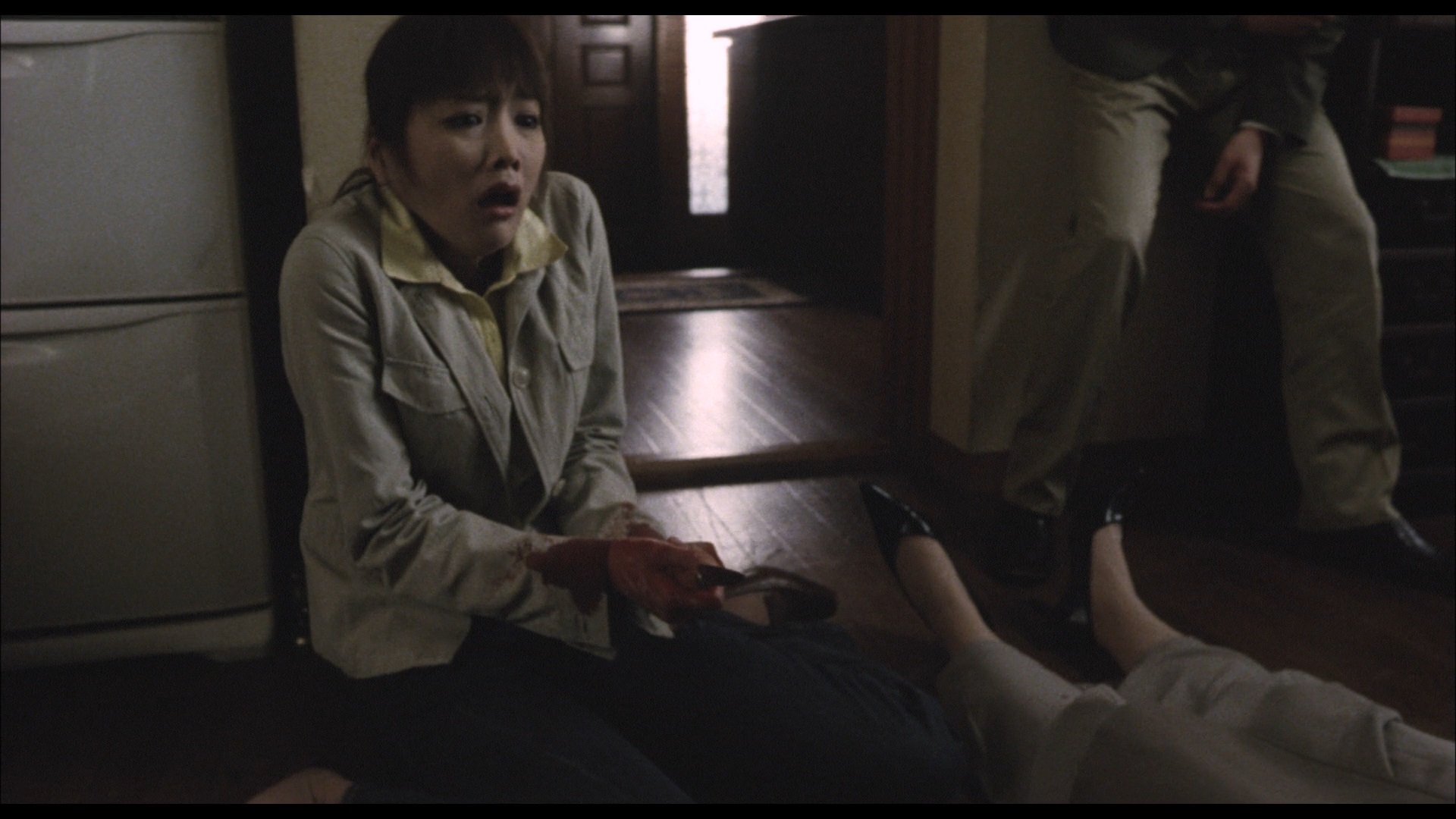 Much of the interest here lies in the chance to see another teaming of two stars from Kenji Fukasaku's legendary Battle Royale, Tatsuya Fujiwara (who has a very prominent role) and Kill Bill: Vol. 1 icon Chiaki Kuriyama, striking here as always with her fairly limited screen time. This one was actually shot first, and while you might expect there to be some kind of haunted mask type of scenario, it actually plays out more like a Japanese giallo with some scenes playing very much in the vein of something like Nothing Underneath or Too Beautiful to Die. How much it actually works will be up to individual taste (as with George Romero's thematically similar Bruiser), but there's no denying that the film looks great and moves fast. Both titles on this disc look fine but have a softer, flatter look than the preceding ones, which seems to be true to the source.