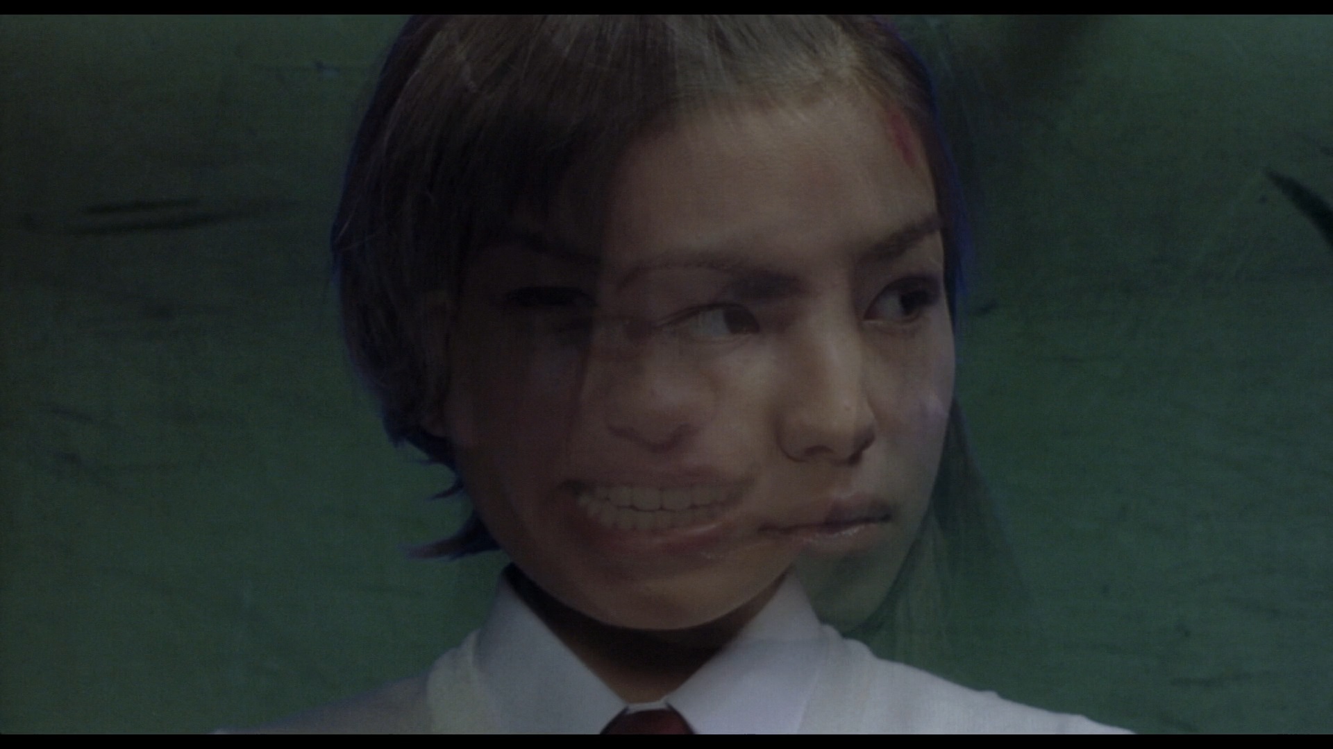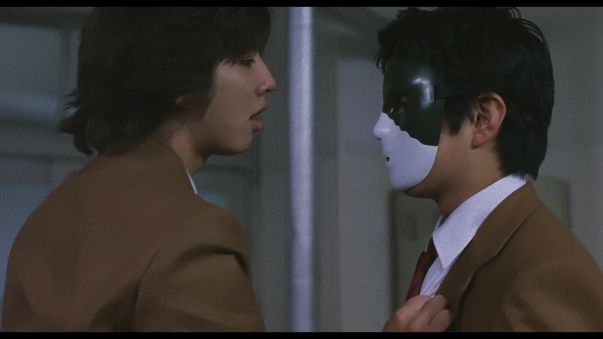 On the same disc is the least seen film in the batch, 2000's Persona, a visually striking blend of social allegory and crazy genre-mashing mayhem that feels very much like the notebook doodling of a high school student at the end of the 20th century. Here the story kicks off when a bullied high school student starts showing up in class wearing a porcelain mask that causes his
