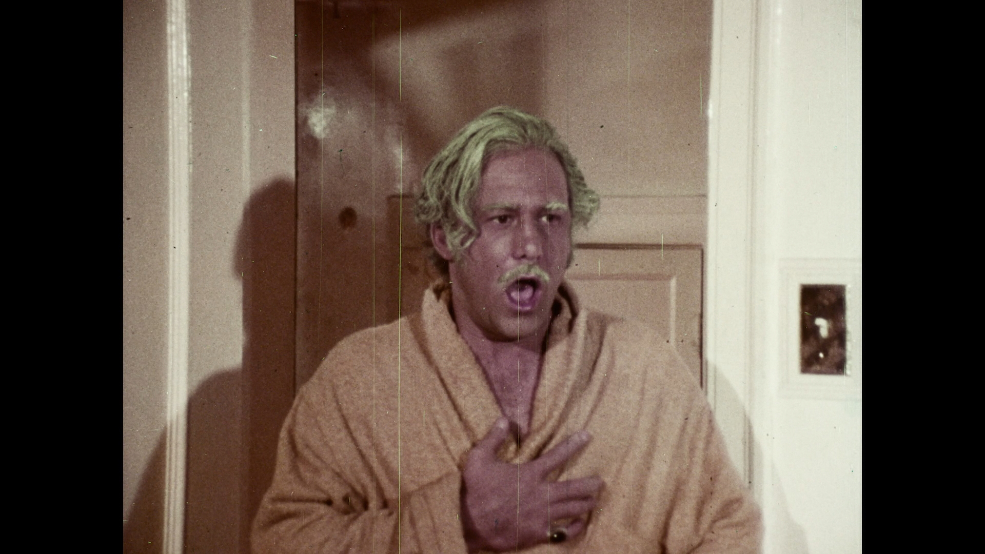Finally you get an entire bonus feature film here, 1969's Angelica, the Young Vixen (60m52s), another Vega International curio in which a peroxide blonde jaibait vixen, Angelica (Dixie Donovan), lures an older guy, Ned (Vincent Ricco, a.k.a. possible real director William Drake), into a violent tryst outside a roadhouse (where gypsies play accompaniment to live nudie shows). She gets out of hot water and a sentence to a foster home by shacking up with the judge (Lou d'Jena), who has a perilous heart condition, bedding his daughter, and developing an apparent allergy to clothing. How long can her scheming hold out? Trashy and filled with sweaty atmosphere, it's a typical softcore programmer from the days before hardcore took over, as represented by a small role for actor Richard Smedley (The Abductors, Brain of Blood) who crossed back and forth over the sex film divide and also pops up uncredited in Mummy as a cop. The print here is the only one in existence, and despite a heavy amount of damage, it's great to have here for posterity and hugely entertaining if you're a softcore exploitation fanatic. This one also comes with a thorough audio commentary with Vinegar Syndrome's Joe Rubin, exploitation film researcher Shawn Langrick, and Severin's Andrew Furtado about the puzzling circumstances behind this film, the path it took to winding up on this release, the connection to the amazing Las Vegas Strangler, and the "two Oliver Drakes" to bear in mind here when you try to figure out who actually made this. The background on Bill Drake alone is astounding, making this essential listening to learn about the dustier corners of '60s fly-by-night exploitation.
