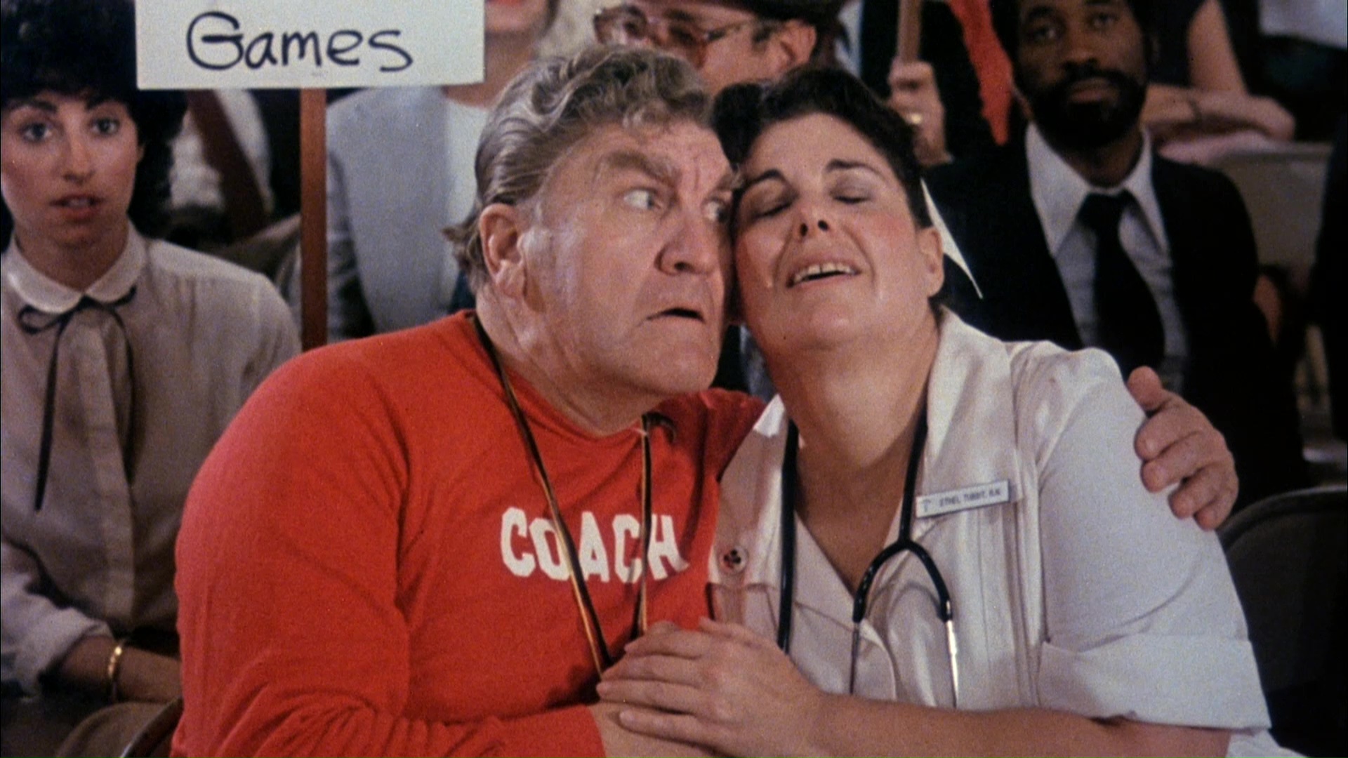 The video history of Joysticks is essentially identical to that of The House on Sorority Row: VHS release from Vestron, short-lived DVD release from Liberation in 2006, and then a far superior special edition from Scorpion. The anamorphic transfer of their 2012 DVD looks good considering the low budget ($250,000); some of it has that cheap, chalky look familiar from '80s exploitation titles, but it's a major improvement in every respect over past editions. The 1.78:1 framing looks better judged, too (and don't worry, some brief but surprising female frontal nudity during a fabricated flashback scene almost but doesn't get matted out). Weirdly though, it has a slight "Cinemascope mumps" look in many shots that indicates something was odd with the source material or the way it was filmed.