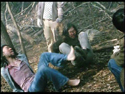 Mostly shot with bleary, naturalistic light and punctuated with jarring stock footage and graphic displays of carnage, Kichiku gets points as a daring experiment even when it doesn't entirely succeed. The inability to really connect with any of the characters results in a disassociated experience barely avoided by its most obvious aesthetic model, Reservoir Dogs, which used a similar closing spiral among unsympathetic characters as a trigger mechanism for massive bloodshed. Here the payoff in the final half hour feels like the film's entire reason for being; the nasty forest episode - complete with brains and viscera littering characters both living and dead - comes at the one hour mark and signals the nasty denouement lying ahead. While the political overtones feel like a reasonable justification for the subsequent excesses, some viewers may not feel the ends justify the means; in any case, it's certainly a distinctive experience and not easily scrubbed from one's consciousness.