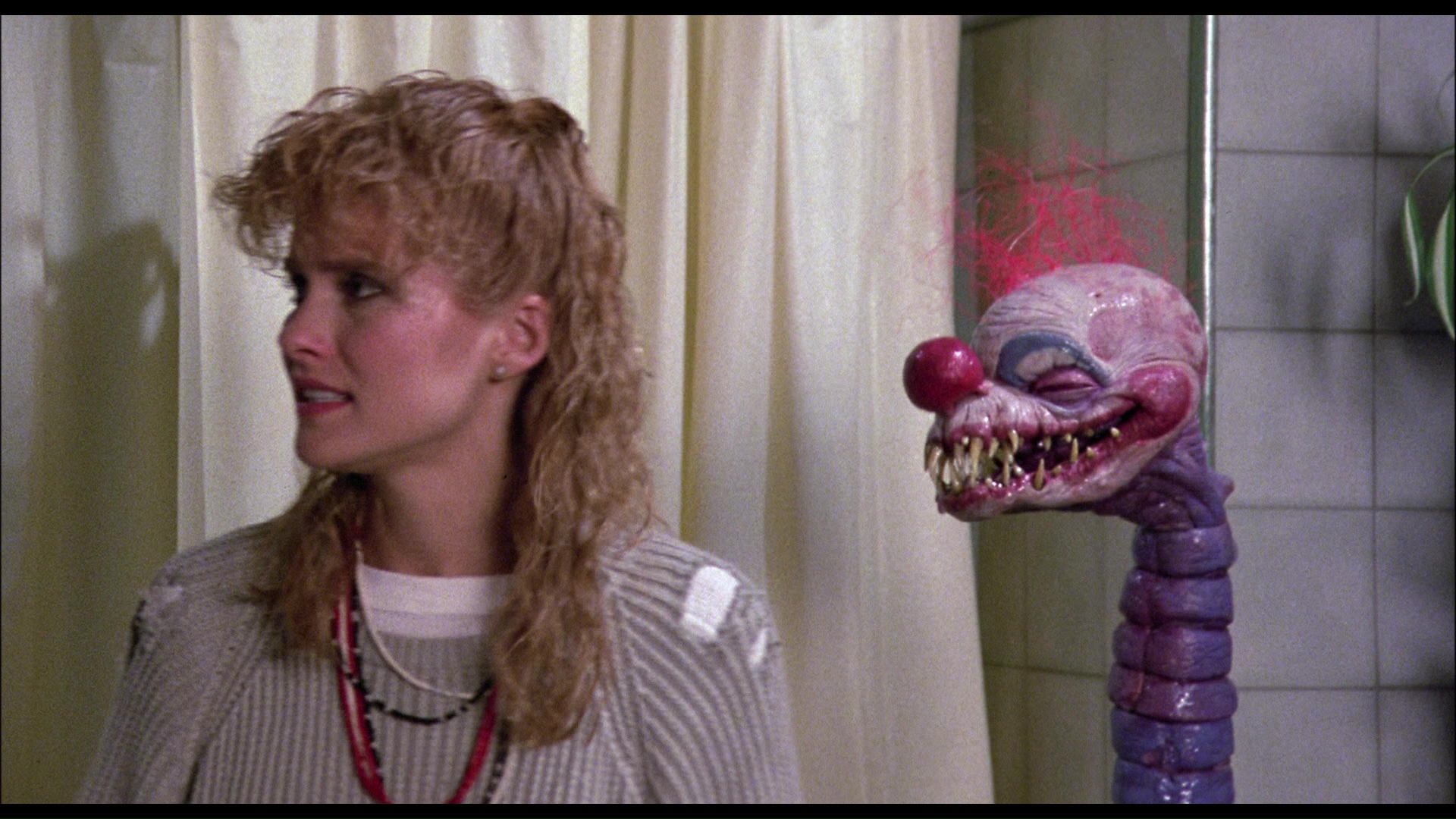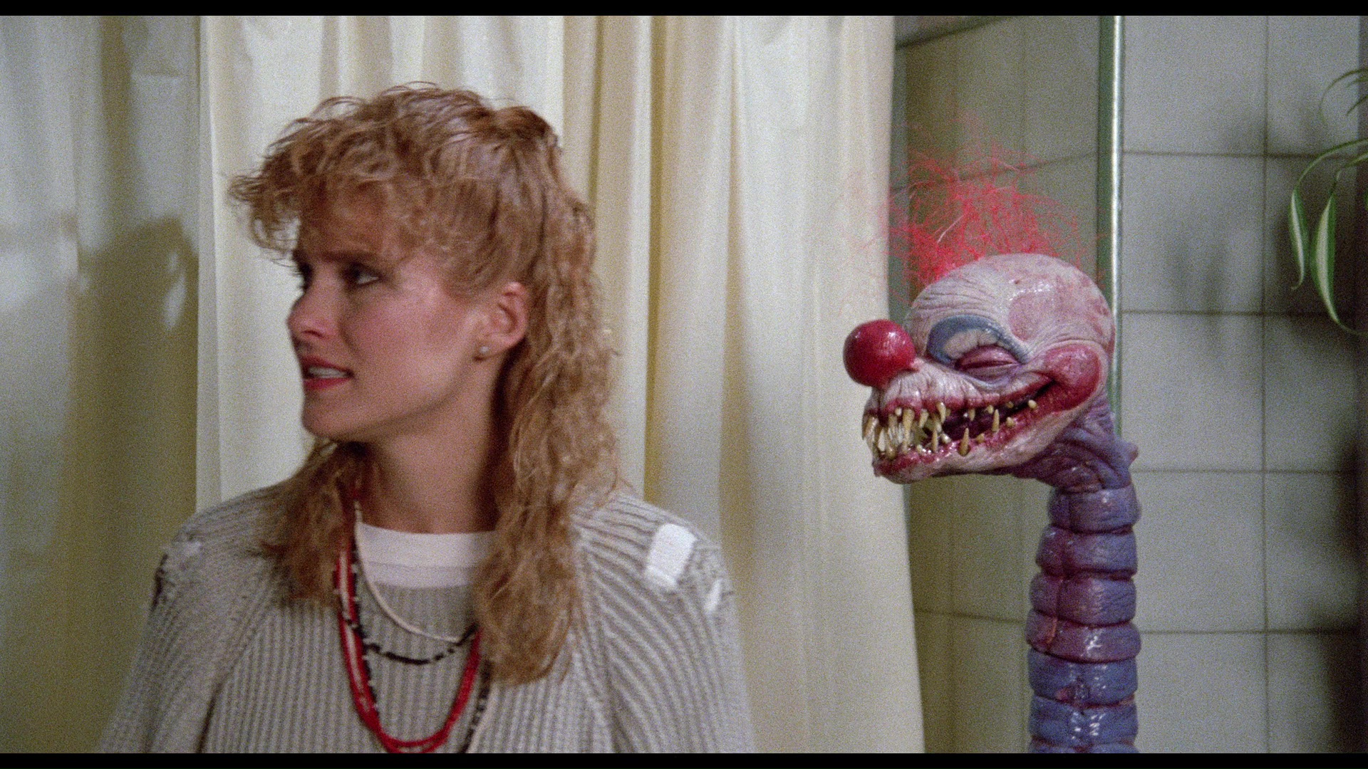 In 2012, MGM bumped the film up to Blu-ray, looking quite nice and featuring a DTS-HD MA English stereo surround track plus a French track and optional English and Spanish subtitles. The same extras are included. In 2014, Arrow Video carried over the same transfer and contents to its own Blu-ray (standard or steelbook editions) while adding a handful of new treats as well. In "Tales of Tobacco" (18m1s), Cramer chats about his entry into acting via New Year's Evil, dodging a sketch project in South Africa, dying his hair dark, and ending up in this "trippy" fan favorite after a soap opera gig. "Debbie's Big Night" (10m39s) features Snyder explaining how she took the film on the advice of her agent and wound up not only hitting it off with the Chiodos but having a blast during the shoot in Santa Cruz even during more difficult scenes like the bathroom confrontation. Both actors also speak warmly about the film's ever-growing fan base and apparent rise from the ashes after its first couple of years of anonymity. In "Bringing Life to These Things" (7m58s), Stephen Chiodo takes a tour of their production process including great close peeks at their creations and some VHS archival footage of his brothers hamming it up for the camera.