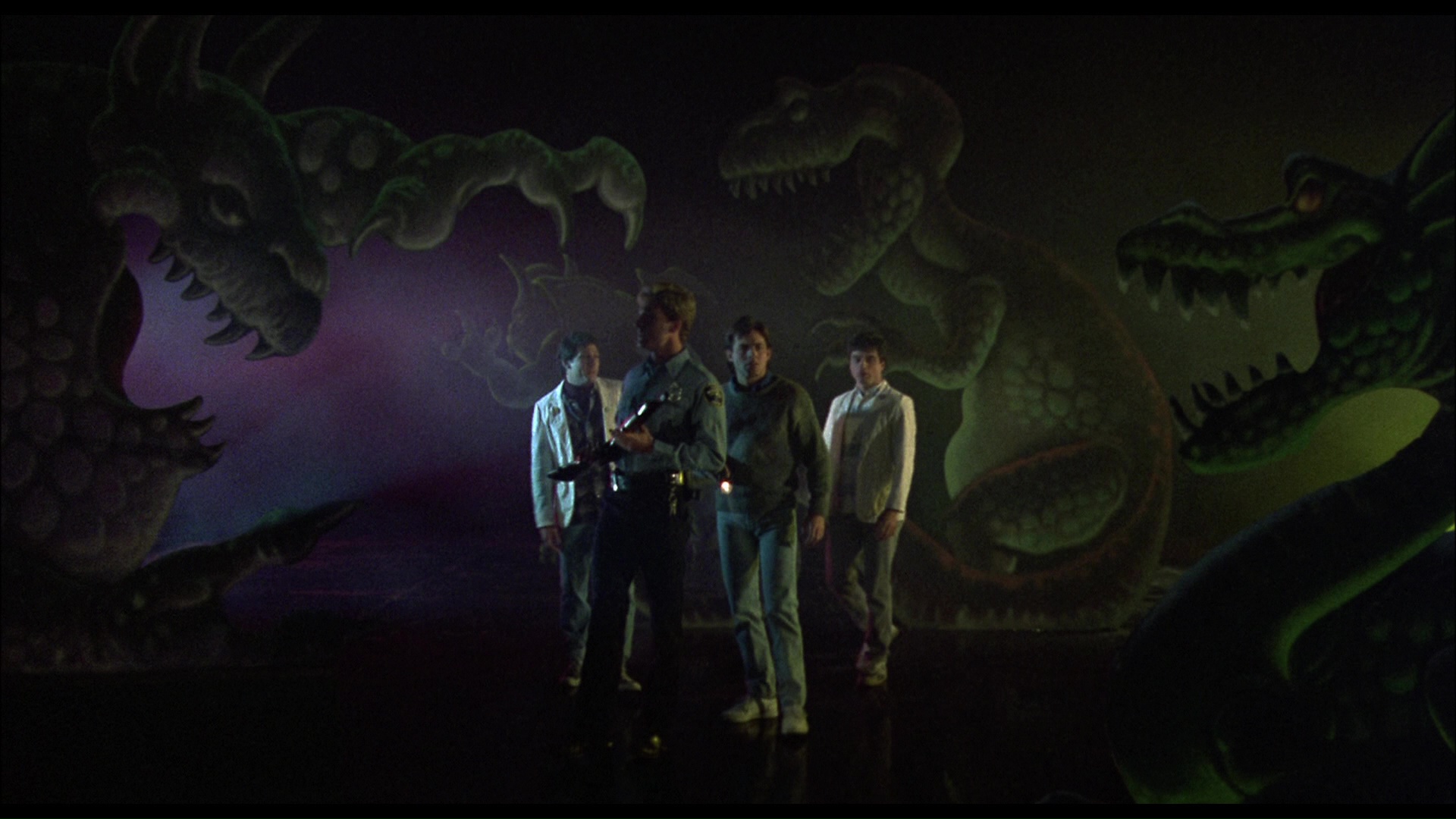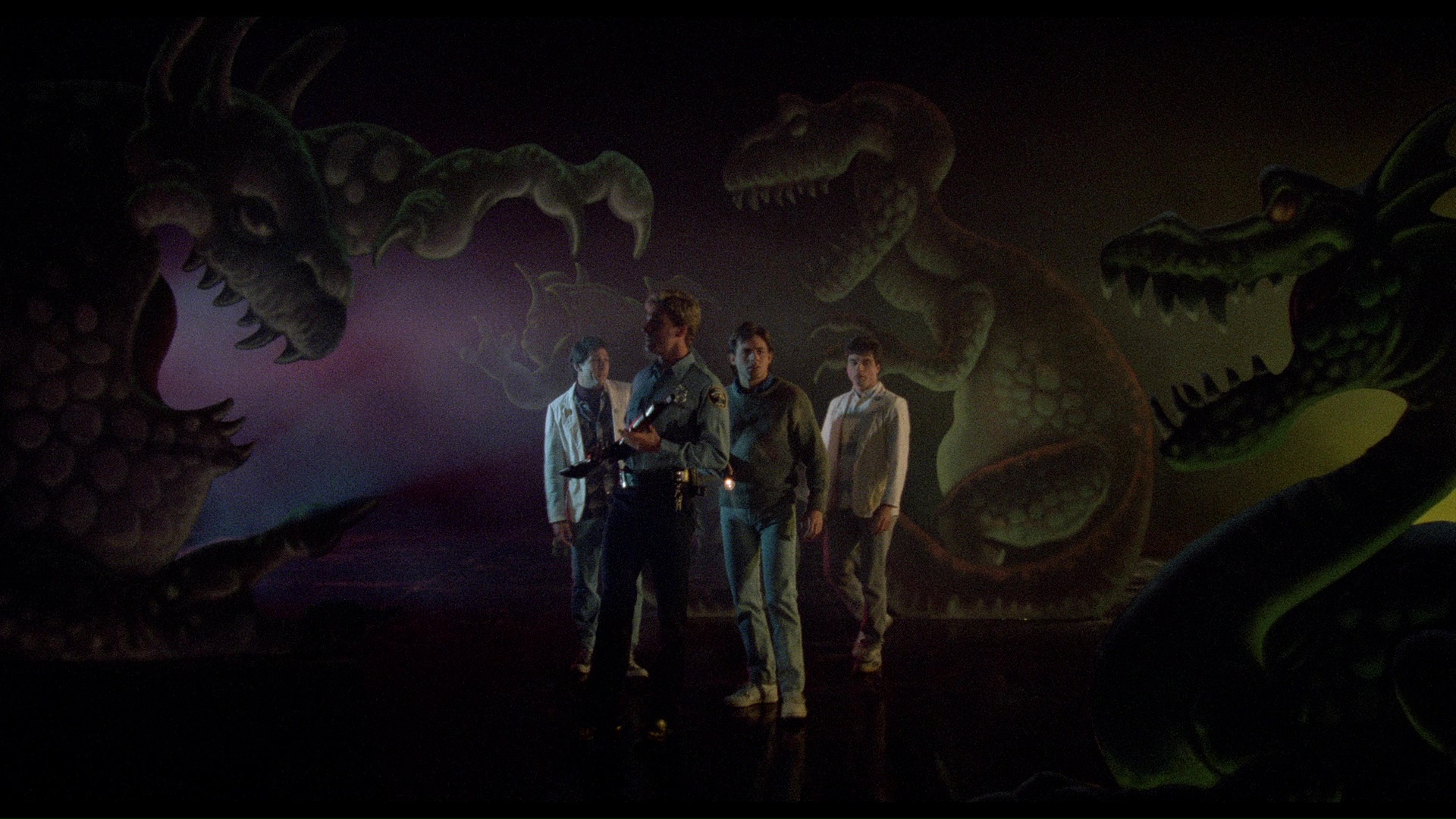 The original commentary is ported over along with (in the "Killer Interviews" section) all of the featurettes from the earlier MGM and Arrow editions apart from "Earliest Films," which is replaced here with all of those silent Super 8 and standard 8mm films and more in their entirety as separate extras: 1967's Harryhausen-inspired "Land of Terror" (7m38s), 1968's suburban monster tale "Beast from the Egg" (7m26s) with optional commentary, 1970's jungle buddy tale "Africa Danny" (16m58s), 1971's "Eskimo" (7m3s), 1972's giant crab gumbo "Sludge Grubs" (6m54s), and 1974's dinosaur cereal prize sketch "Free Inside" (12m20s). The bloopers, auditions, trailer, and two deleted scenes are also here in the main extras menu. Dickies fans will rejoice with "Let the Show Begin" (10m38s), featuring original band members Leonard Graves Phillips and Stan Lee chatting about the musical influences on their iconic theme song, their origins as a San Fernando garage band, and the tune's release as a non-punk EP that elicited either love or confusion at the time. They also note that they have a song written for the long-promised sequel, should that ever come to pass. "The Chiodos Walk Among Us" (23m41s) essentially takes an updated, more extensive look at their playful early monster movie creations, including some bits of test footage and character designs never seen before, while "Behind the Screams with the Chiodo Brothers" (29m54s) is a fun, raw VHS reel of production footage from the shoot. Four expanded galleries are tucked in featuring stills, behind-the-scenes production shots, very cool concept art, and storyboards. The reversible sleeve design also features striking new artwork by Sara Deck, which deserves a poster release of its own.